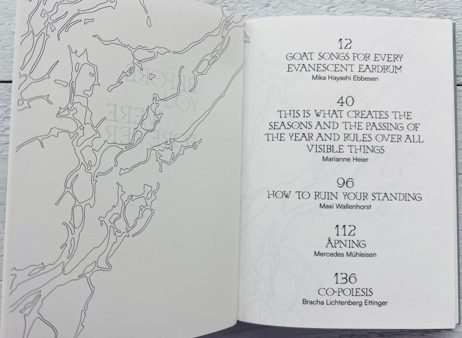 « From the dusty shafts of an ancient quarry to the transgressive reattunement in metramorphosis, this book is a revolt against false separation. Mika says: Will you stick around long enough for us to hum together? Marianne says: Like a gasp in slow motion. Swoosh. Falling into modernity. Maxi says: You stand for how I, crucially, do not even know who I am talking to. Mercedes says: An endless string of mouths has shaped the story again and again. Wash off those goosebumps and listen. Bracha says: The artist in the matrixial dimension is wit(h)ness in com-passionate hospitality. »