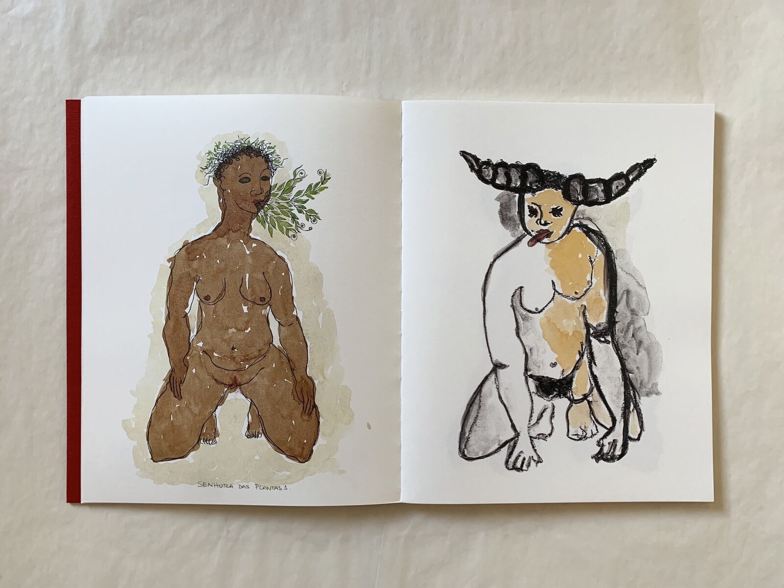 In this warm and soft book, covered by a blood red fabric, artist Rosana Paulino brings together for the first time the series of drawings that give their title to the publication: Buffalo and Lady of Plants. Both represent female archetypes related to the black psyche, and they go against the dominant European and colonial collective consciousness.