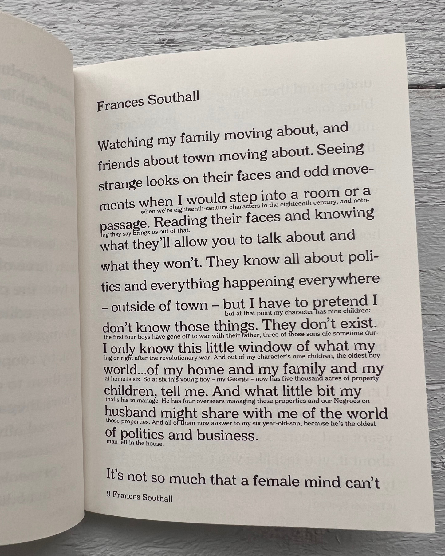Colonial Williamsburg, a living-history museum in Virginia. The museum is actually part of the historical town it recreates, occupying and preserving the town’s buildings and grounds, while training and paying its residents to act out colonial American life. The ten persons originally interviewed represent a cross-section of Williamsburg's resident actors: men and women of different social standing and origin; democrats and republicans; property holders and day laborers; militia members and housewives; part-time revolutionaries and slaves. All sat down to be interviewed in their work areas and costumes, usually eighteenth-century interiors and period garments.