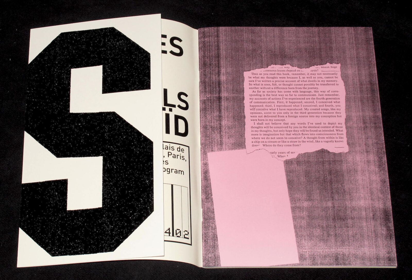 Published in 2002 on the occasion of Franck David’s exhibition at Palais de Tokyo (Paris), the 40-page catalogue literalizes the title’s calculation. But beyond its arithmetic logic, the gesture becomes a conceptual operation—transforming absence into presence, and printed matter into a cinematic trace.