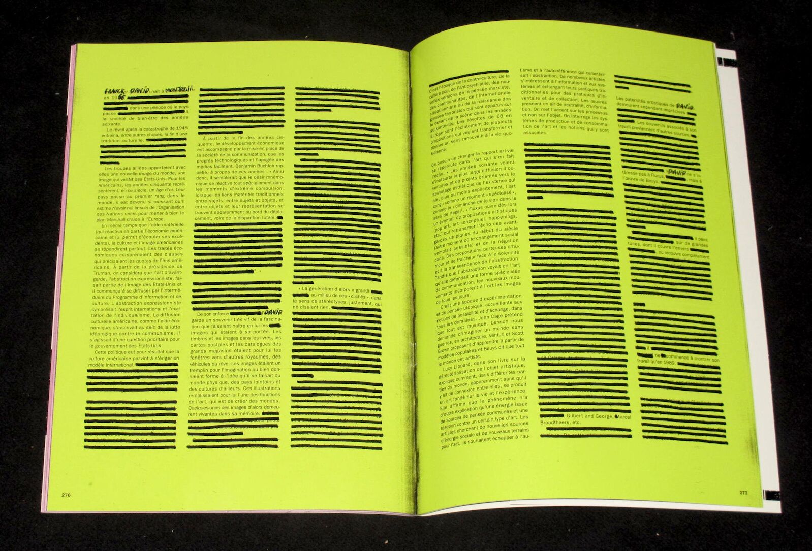 By reducing the original 272-page material to a remaining 40 pages, the artist Franck David emphasizes what is left—what resists omission and becomes the essence of the work. The term "celluloid," historically associated with early film stock, functions here as a metaphor: it evokes the notion of editing, sequencing, and framing—of turning material into a medium.