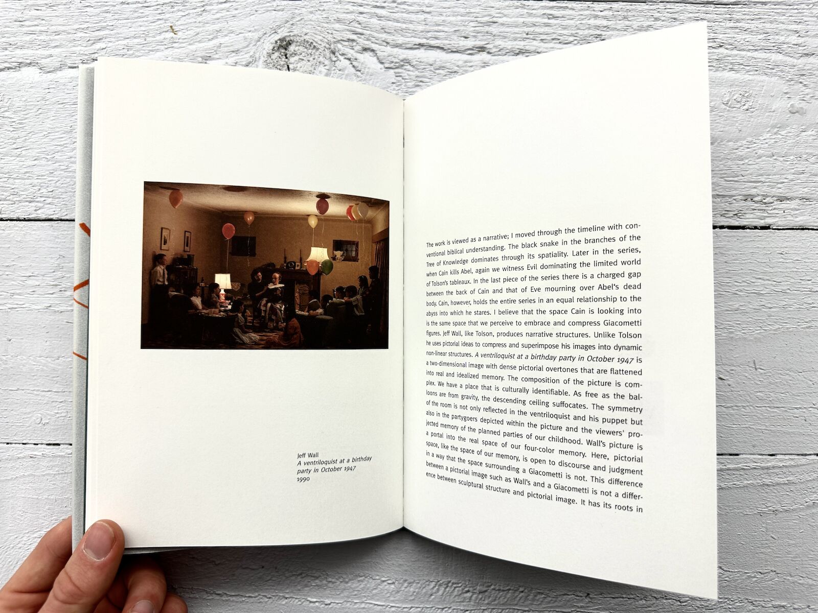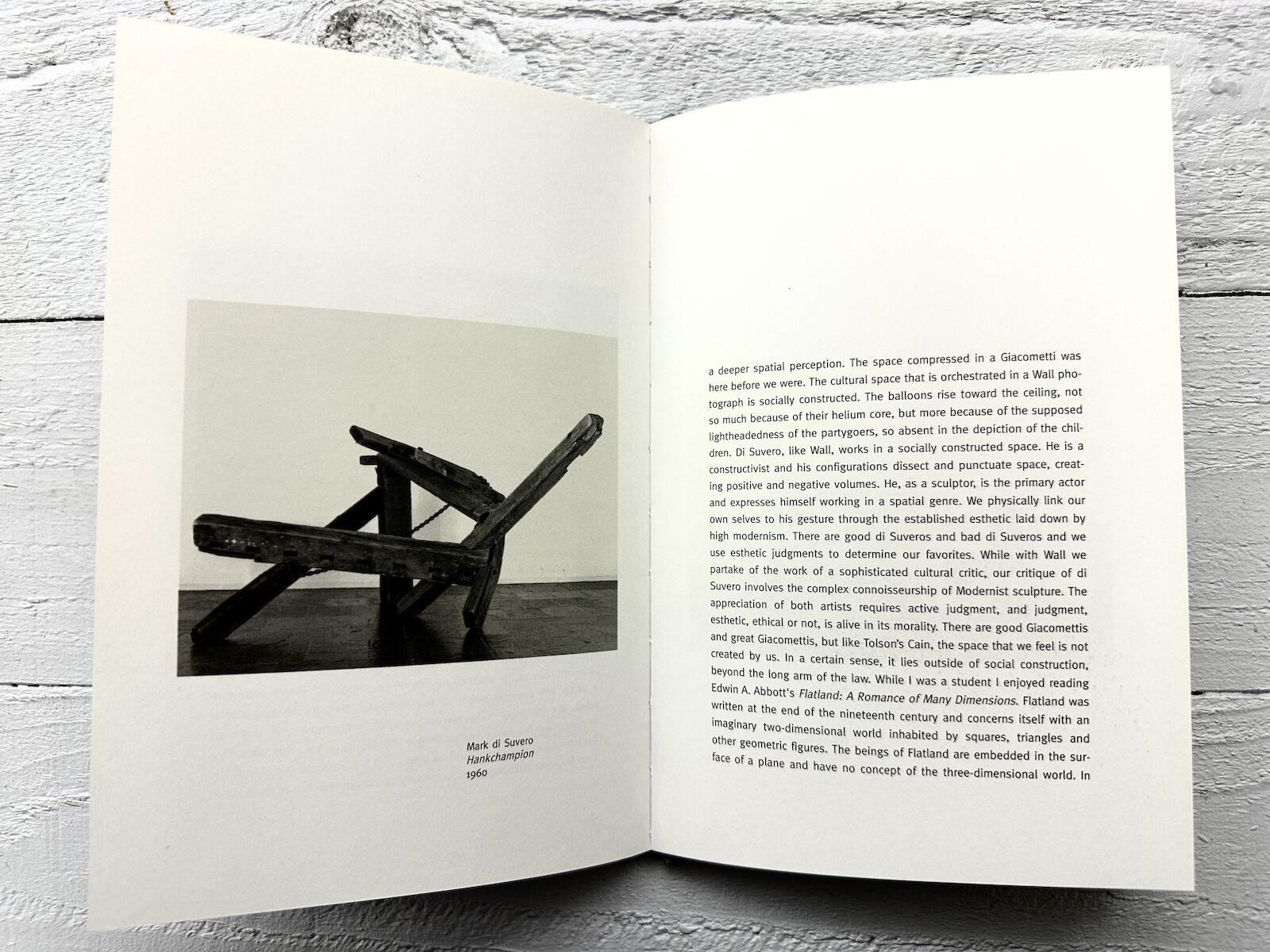 A four dimensional being writes poetry on a field with sculptures is the title Ray gave to both the exhibition, which took place at Matthew Marks Gallery in New York, and this small, beautifully-produced volume, which accompanies it. Key artworks include Giacometti's 1948 "Standing Woman;" an untitled stack piece by Donald Judd; an ancient Greek kouros from roughly 600 B.C.; a sculpted piece of island marble from Attica; Mark di Suvero's 1960 "Hankchampion;" Jeff Wall's 1990 "A ventriloquist at a birthday party in October 1947;" and a series of 1969 sculptures entitled "The Fall of Man" by the American folk artist Edgar Tolson.