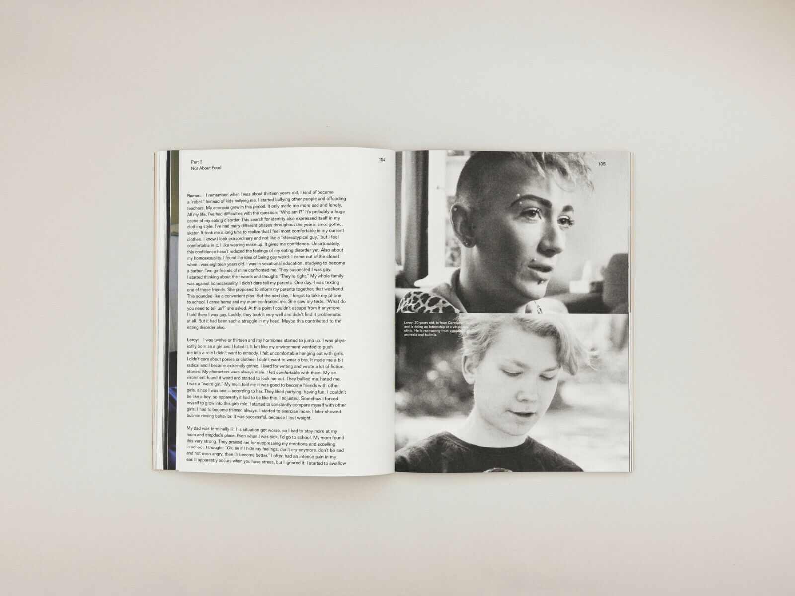 For over a year, Mafalda Rakoš and Ruben de Theije accompanied eleven men affected by eating disorders. Through photography, text and drawings made by the protagonists, the authors aimed on reaching the heart of the men’s shocking experiences, revealing vulnerable conflicts between social expectations and big emotions; the stories they want to tell. Mafalda Rakoš, *1994 in Austria. Lives and works between Vienna and Amsterdam.