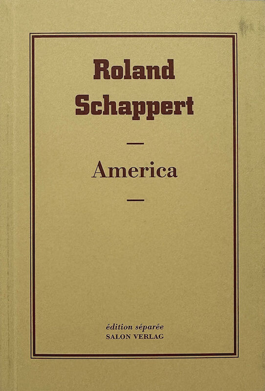 Bildfragmenten und kulturellen Vorstellungen rund um den Begriff „America“ beschäftigt. Handgeschriebene Elemente, grafische Markierungen und reduzierte Linien führen Motive zusammen, die zwischen Wahrnehmung, Projektion und Medienbild oszillieren. Die Publikation zeigt Schapperts charakteristische Verbindung von Schriftbild, Zeichnung und reflektierender Bildsprache.