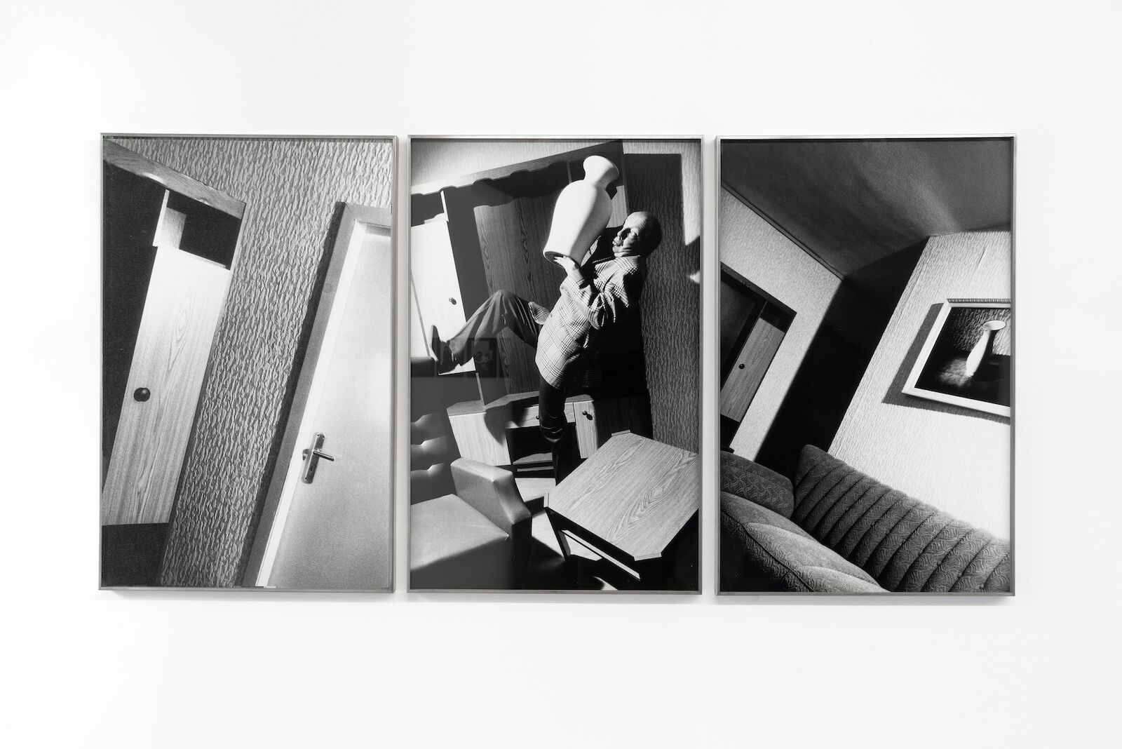 In den Bildsequenzen geraten Alltagsgegenstände – insbesondere Vasen – in eine scheinbar autonome Bewegung und treten in ein konflikthaftes Verhältnis zu den dargestellten Figuren. Die Fotografien zeigen Situationen, in denen Dinge eine unerwartete Eigenständigkeit entwickeln und die Ordnung des häuslichen Raums destabilisieren.