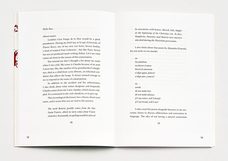 The publication accompanying the exhibition Elogio al disparate documents an e-mail correspondence between the artist and Puerto Rican writer Claudia Becerra.