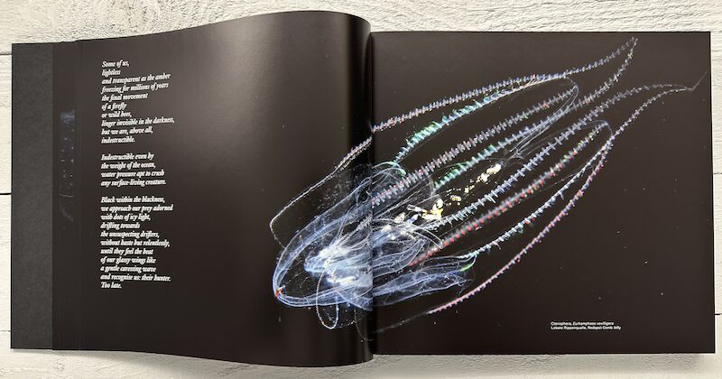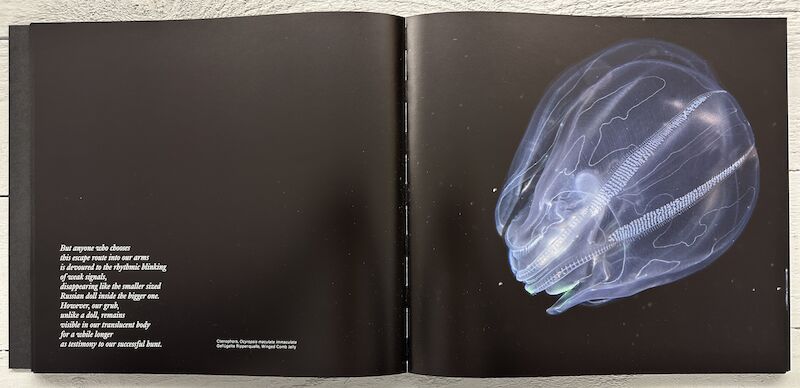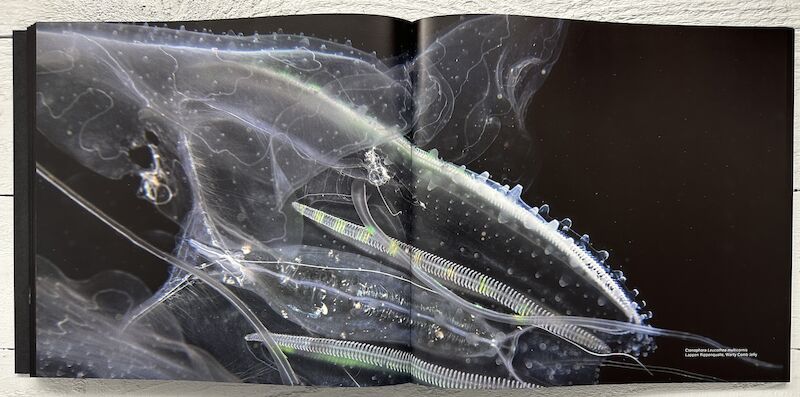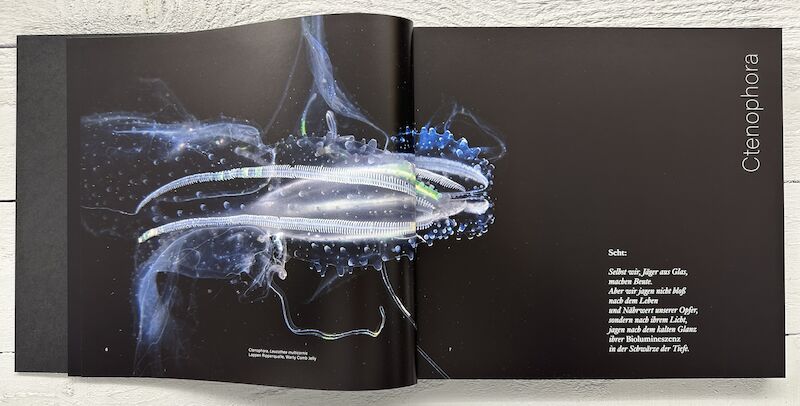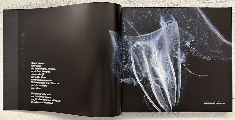 Christoph Ransmayr’s Seven Cantos, which accompany these photographs, give the salps a voice of their own. They are like testimonies from afar of a disconcerting shift in perspective the gaze now moves out of the underwater infinity and abruptly into the universe, without lingering on humans and their history.