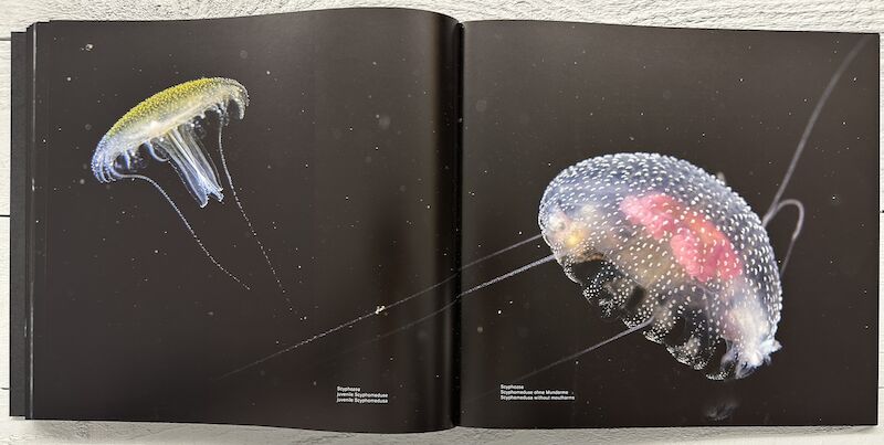 Austrian artist Manfred Wakolbinger has been working on his enormous collection of underwater photographs for many years. For this publication, he brings together the family of salps, tiny, transparent, yet highly differentiated creatures and forms that rise from the depths of the sea at night. Their fragile beauty is not merely a projection of the viewer but owes its overwhelming evidence to Wakolbinger’s magnificent images.