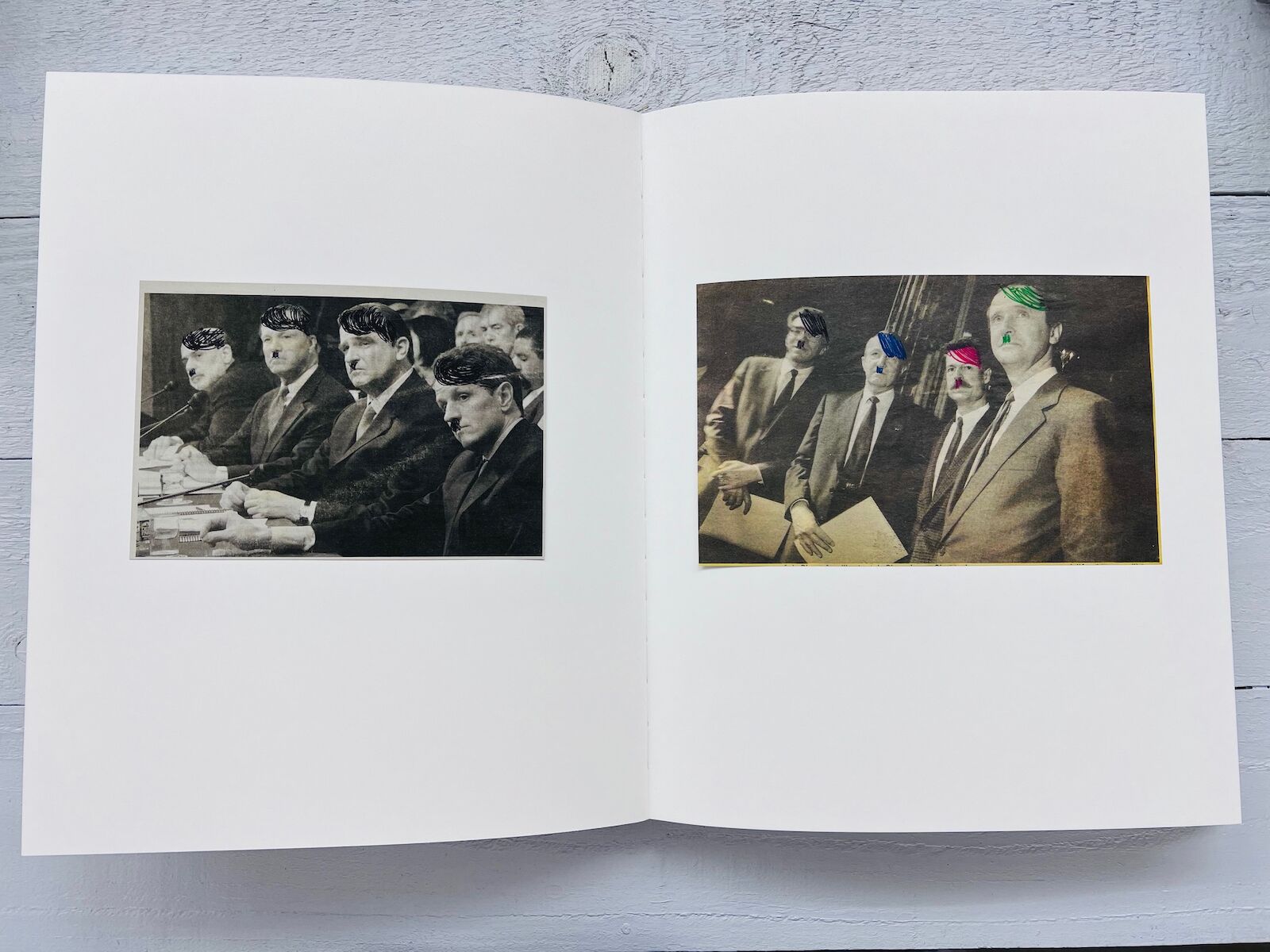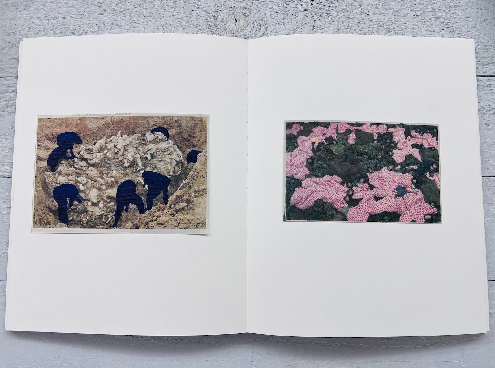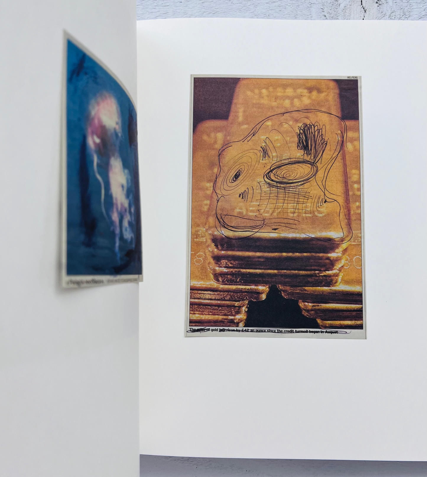 Each facsimile clipping has been hand-glued into the book and modified by the artist through erasure, annotation, overpainting, or typographic intervention. These subtle acts of disruption transform media fragments into poetic and critical reflections on public discourse.