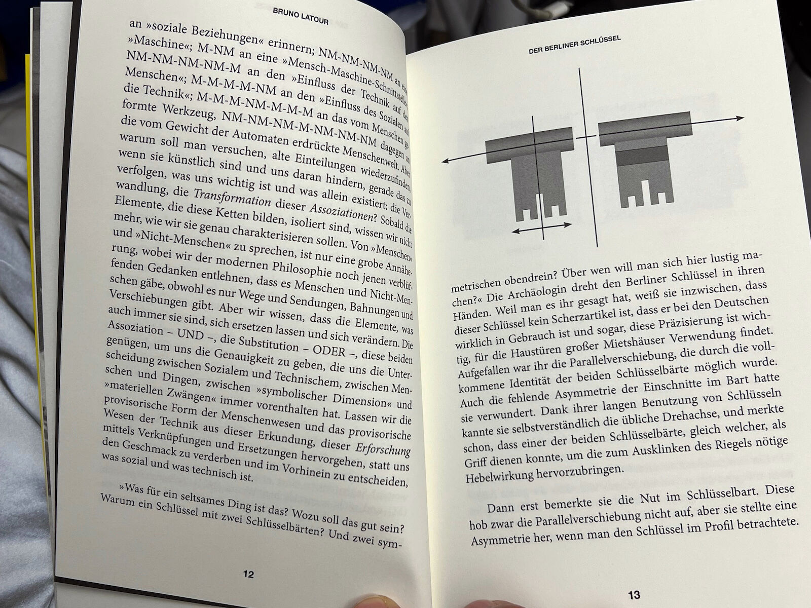 Der Berliner Schlüssel von Bruno Latour liest sich als wunderbar klarer Text, der nicht nur Latours Verständnis unserer Gesellschaft verdeutlicht, sondern gleichzeitig auch einen für viele Berliner alltäglichen und doch mysteriösen Gegenstand bespricht: Diesen Schlüssel mit doppeltem Bart, der vor 100 Jahren