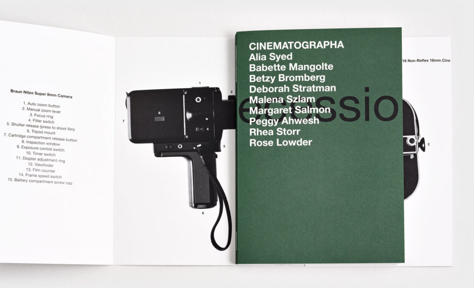 Included with the book is a separate manual: “An Artists' Guide to Analogue Cinematography”. This learning pamphlet was written and photographed by Salmon, and includes step by step instructions to the loading and basic use of three cine cameras.