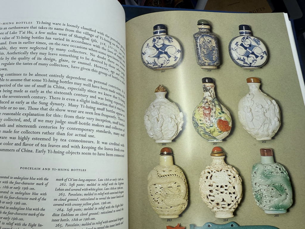 . This important limited edition reprint is inevitable and fulfills the growing need of new collectors for reliable and useful reference on the subject. The book is produced in Japan with the same high quality to ensure the superb feel of the original edition. Each copy is hand-numbered. It covers snuff bottles made of all the various precious materials and discussed the fundamentals of collecting and details of the symbolism, motifs, reign marks, and seals. Moreover, it includes extensive bibliography for further research.
