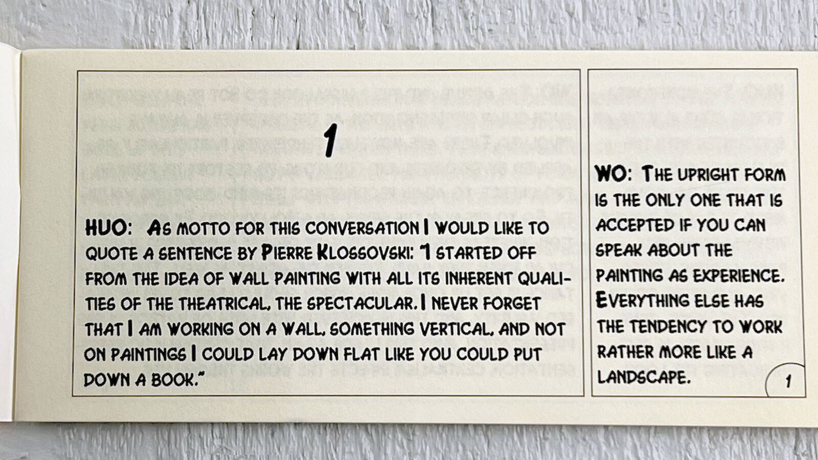 In Ways of Curating (2014), Obrist observed that art should function as a lifelong conversation. His first book-based interview, with Walter Obholzer, was published in 1991, and has been followed by almost one thousand interviews with artists, scientists, and writers, in a global array of languages. The interview with painter Walter Obholzer, printed in the form of a comic book in English, German, and French.