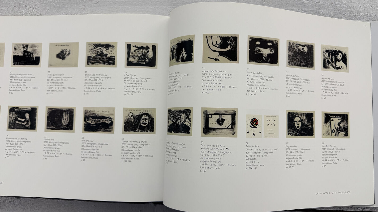 David Lynch: Lithos, 2007–2009 presents a group of graphic works by the artist and filmmaker David Lynch produced between 2007 and 2009. The publication documents a body of work in which Lynch extends his distinctive visual language beyond film into the medium of printmaking.