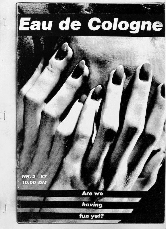Issue no. 2 (1987), featuring a cover by Barbara Kruger, underscores the magazine’s engagement with politically charged image strategies and text-based visual culture. Overall, Eau De Cologne functioned less as a conventional periodical than as a curatorial publishing experiment, linking artistic practice, critical writing and graphic design within the emerging transnational art networks of the late twentieth century.