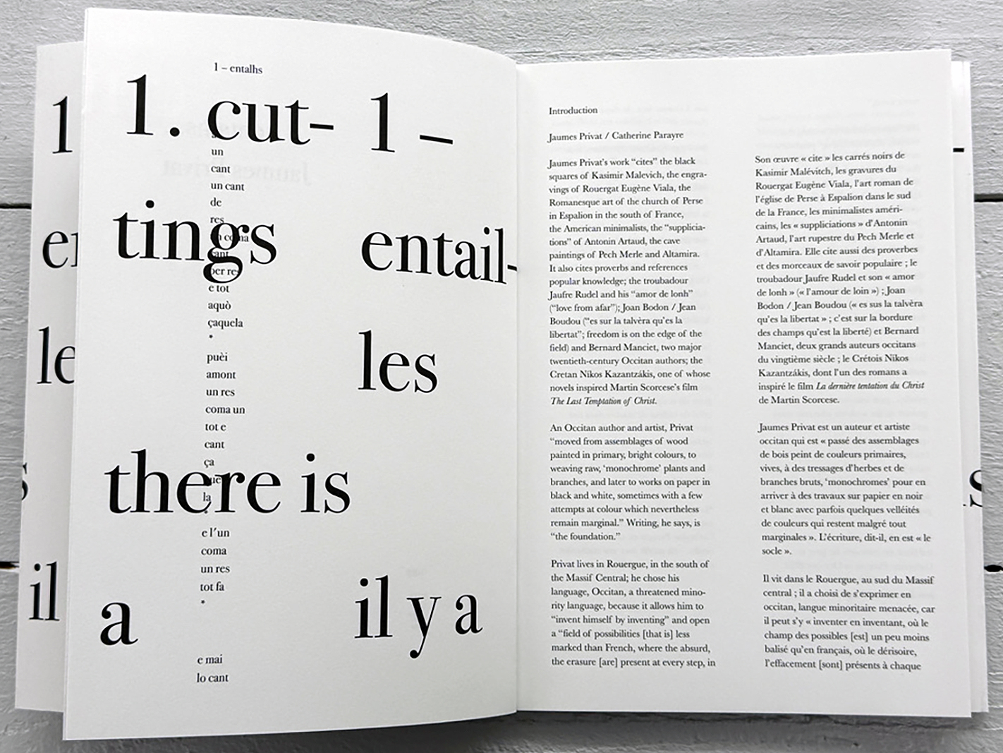 Nothingness, to which the artist-poet gives a solid form, a sculpted object, which here becomes paper. Jaumes Privat is an author and artist from the South of France, who chose an endangered language (Occitan) because it allows him to “invent himself by inventing.”