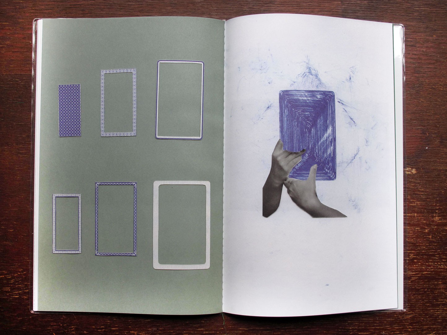 Avoiding the use of personal imagery, intimate photographs become generic due to small interventions; collage, modified poker cards and excerpts from magicians’ handbooks are combined to create a narrative that compares a deck of cards with any collection of photographs found in a traditional photo album. Starting from a series of nearly identical elements, it’s only the way we play them that provides a different result for each game.