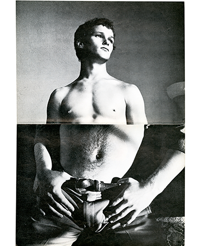 After retrieving the material from a storage unit, Iosca felt a strong responsibility to create something from the material, both to honor a man he’d never met and the many other men like him. On moving to New York the magazines traveled with him, and in many ways their sheer weight forced the project. Iosca began by taking the magazines apart with the idea of creating new signatures out of their pages and in the process “found” these images. The compositions are the result of the pagination required for offset-printing a saddle-stitched publication and each magazine yielded just a handful (or less) of the composite images.The publication title EXQUISITE CORPS plays on ‘exquisite corpse’ from the original French term cadavre exquis, the surrealist party game in which members of a group each draws a portion of a fantastical body, with the figure in its entirety only revealed at the end of the exercise.Of the publication, Iosca says: I like the idea of remembering these men. They’re not the centerfolds. They always saved the best looking man for the centerfold, these are the other men. The filler. The forgettable ones you flick past on the way to the feature. And isn’t that a stunning metaphor for life?I think these bodies are exquisite. I think they are funny and sexy and compelling in the way they are a window into a specific kind of commercialized desire. They’re a product of their time, which also comes with a shocking amount of innocence for such “adult” images. They’re also nostalgic. No one buys dirty magazines any more. They’re a lovesong to printed matter. I’ve been making work about being queer for over a decade. I think it’s important.'