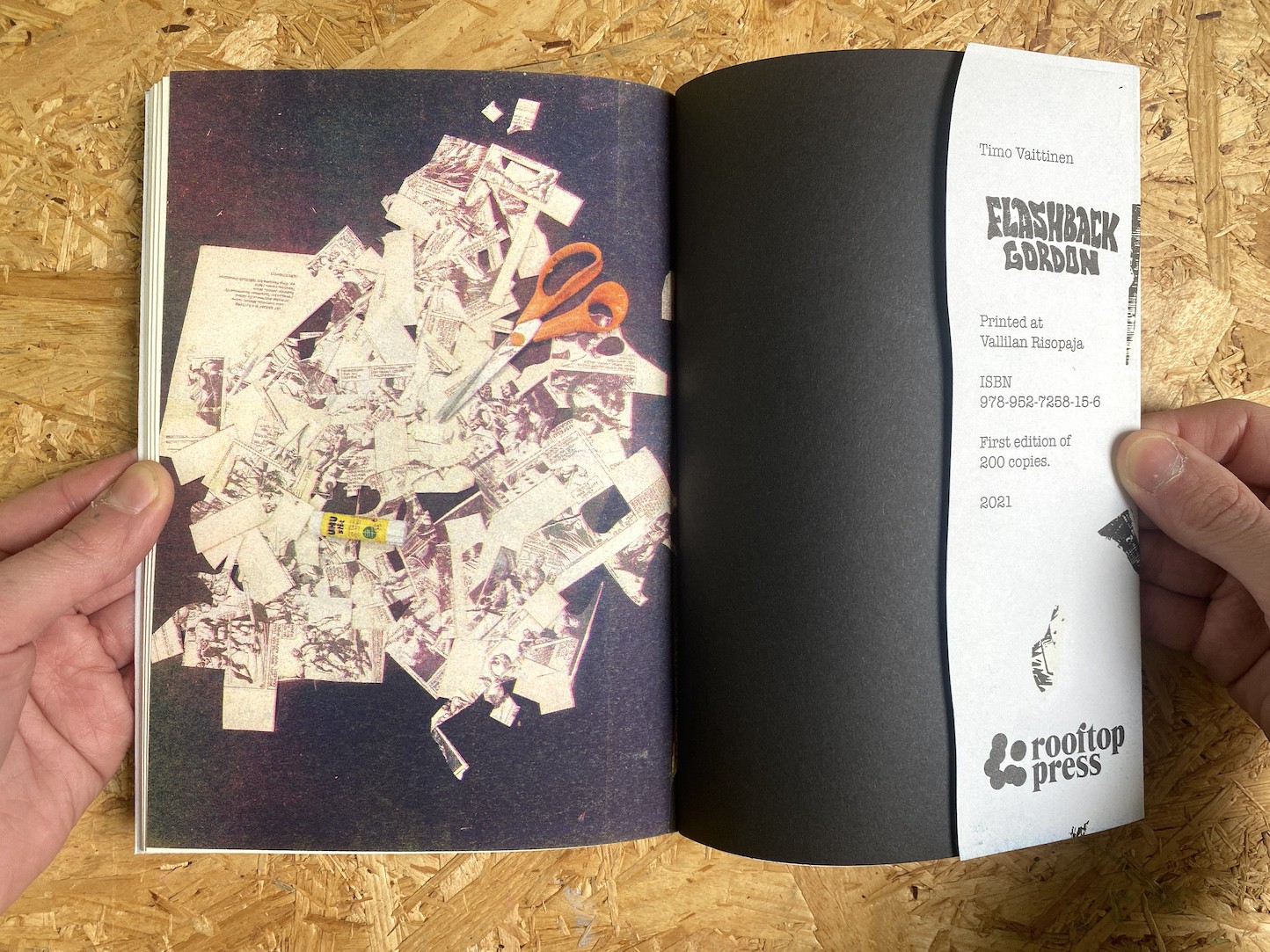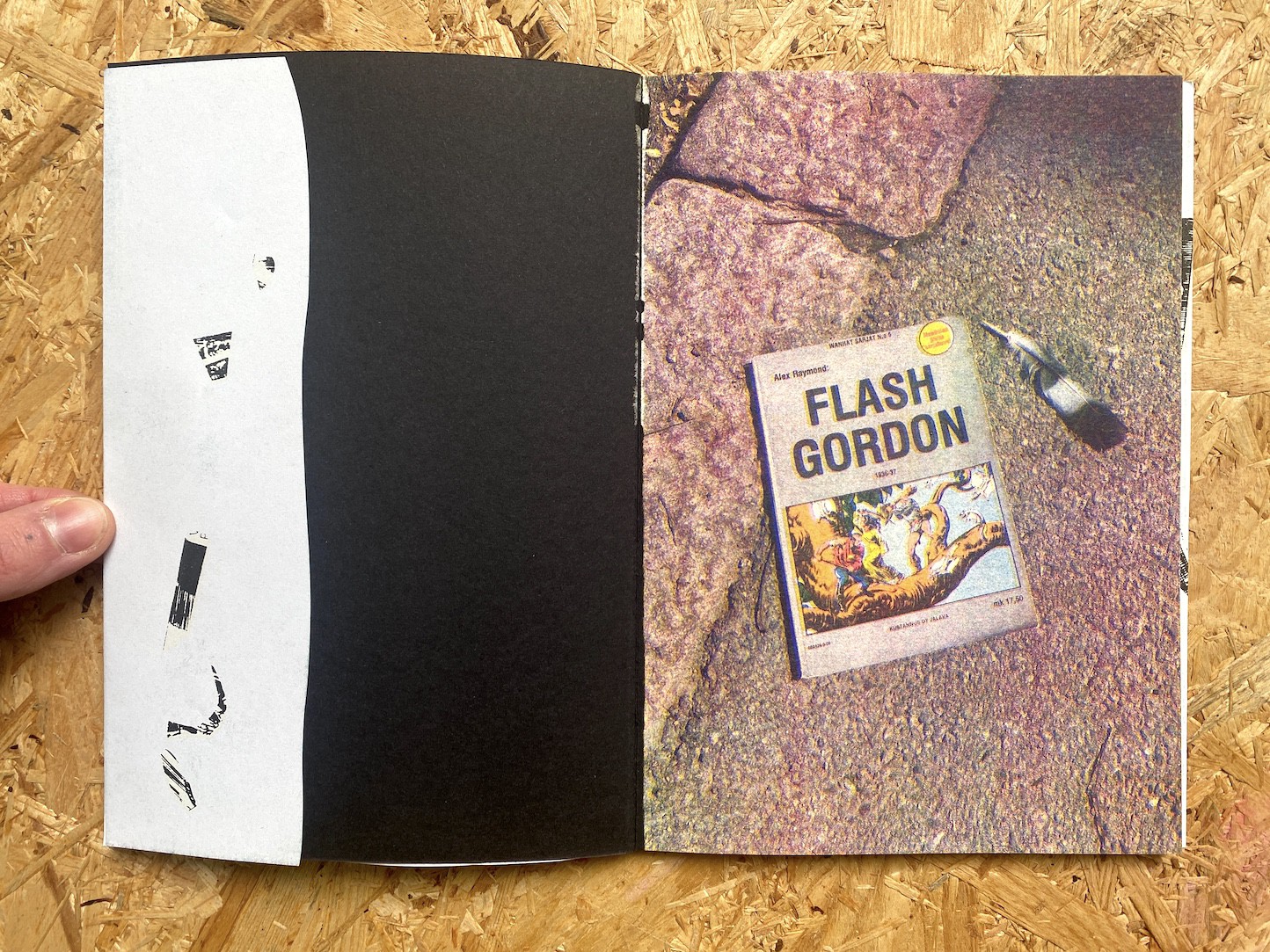 Flashback Gordon is a conceptual artist’s book by Timo Vaittinen that reconfigures a discarded comic album found on the street into a series of abstract collages.