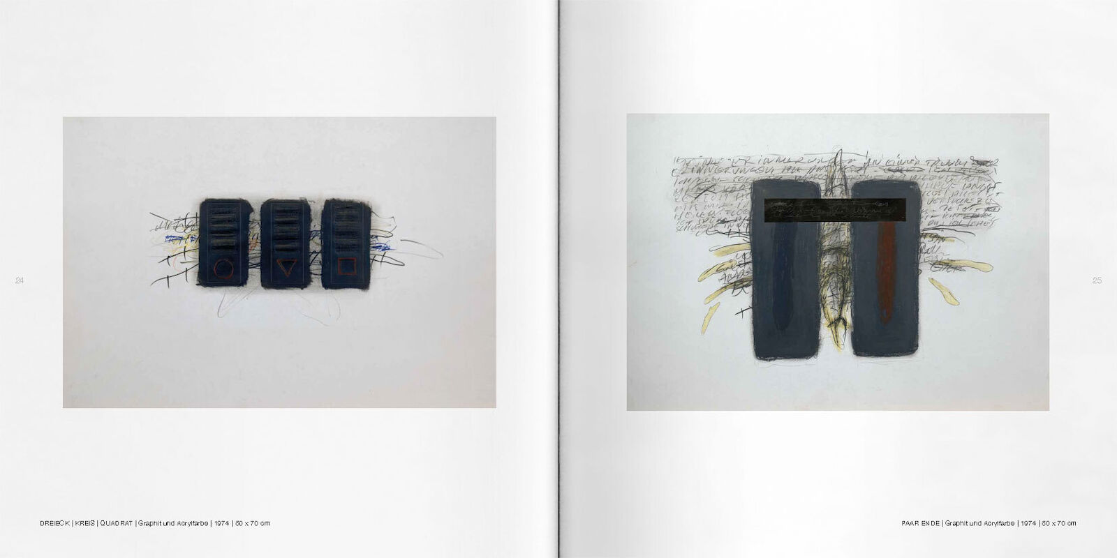 insight into his graphic work from 1972 to 2021. His distinctive formal language, both abstract and representational, weaves witty wordplay, geometric fragments, and at times imaginative motifs onto pictorial surfaces. The mostly monochrome graphite works testify to a subtle sensibility for bodies, forms, light and shadow. A monograph of works with text contributions by Barbara Horvath, Henri Michaux, Franz Vana and Martin Zeiller.