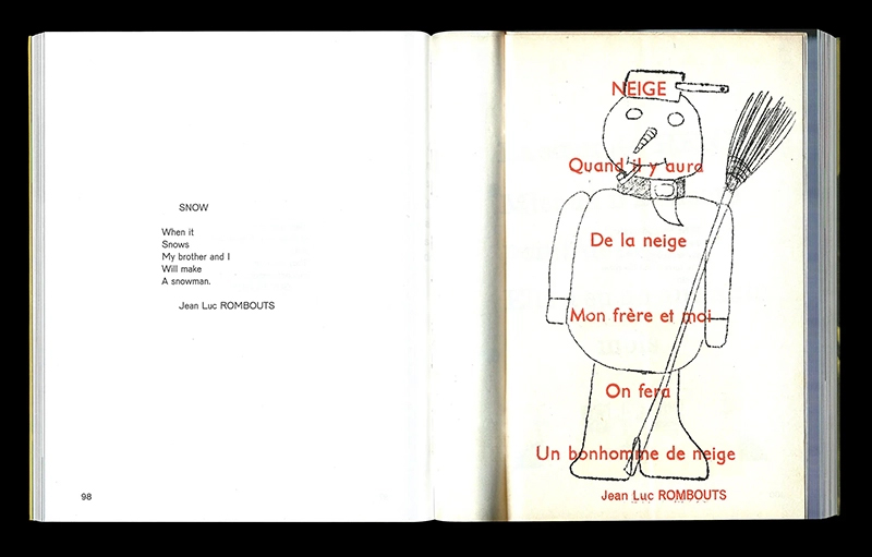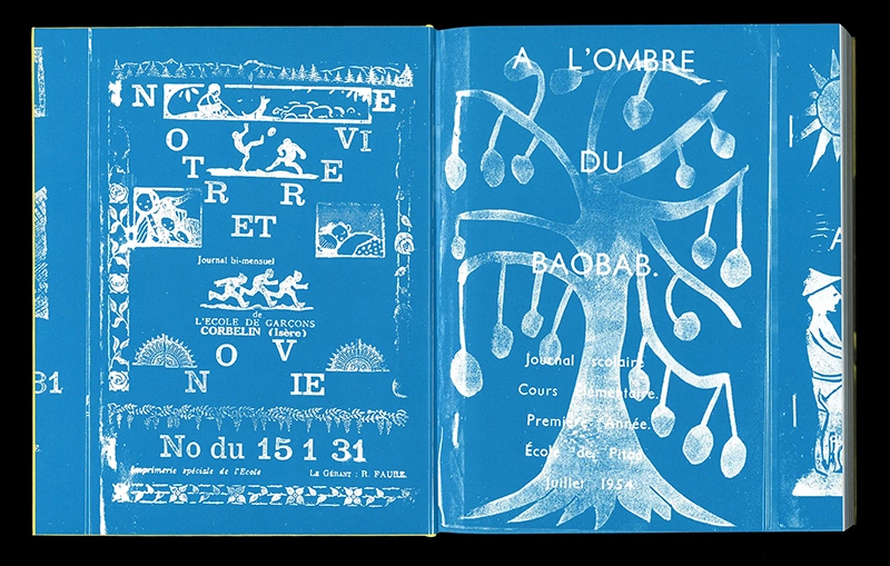 printed by children on the presses of the Freinet schools between the 1920’s and 1980’s. Reproduced from the archives of the association les Amis de Freinet, the children’s texts are accompanied by three essays by graphic designer César Rogers, artist and researcher Marie Preston and Gangloff. The essays make a link between the ideological framework of the Freinet techniques and contemporary practices of graphic design, literacy and co-creation.