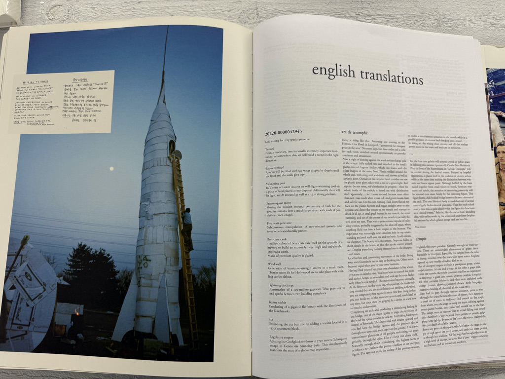An abundance of photographs, sketches, models, and ideas—alongside artist statements and essays—invites an immersive dive into the Gelitin universe. The four Austrian artists create a Gesamtkunstwerk between two book covers. Gelitin is widely known for imaginative works and actions marked by anarchic wit and subversive humor. Their choice of themes and materials appears virtually limitless.