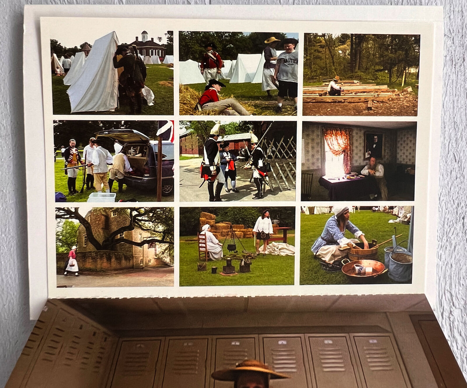 Colonial Williamsburg, a living-history museum in Virginia. The museum is actually part of the historical town it recreates, occupying and preserving the town’s buildings and grounds, while training and paying its residents to act out colonial American life. The ten persons originally interviewed represent a cross-section of Williamsburg's resident actors: men and women of different social standing and origin; democrats and republicans; property holders and day laborers; militia members and housewives; part-time revolutionaries and slaves. All sat down to be interviewed in their work areas and costumes, usually eighteenth-century interiors and period garments.