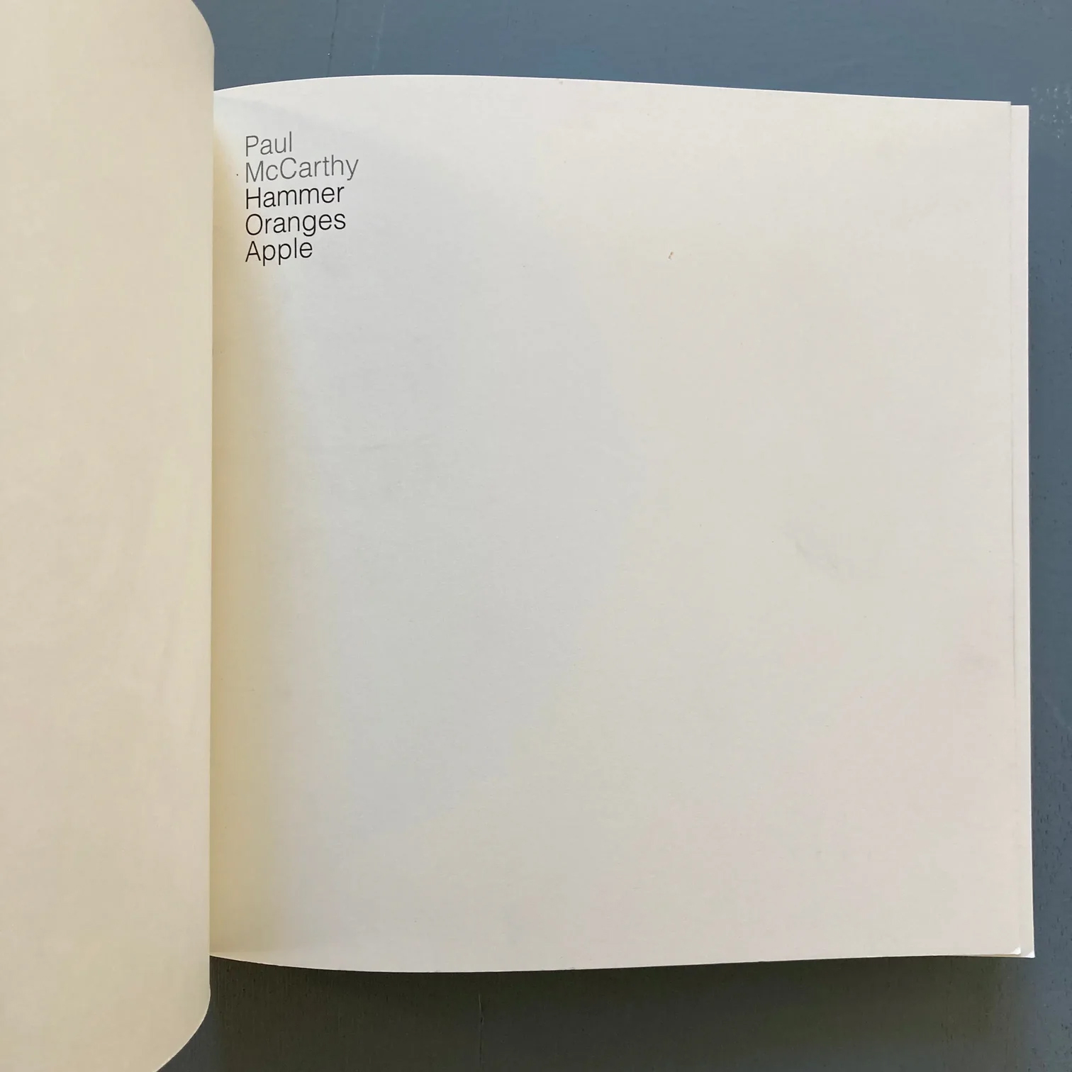 Hammer Oranges Apple serves as both an exhibition record and a critical document, situating early video work within McCarthy’s broader investigation of material, bodily action, and the conditions of presentation and preservation.