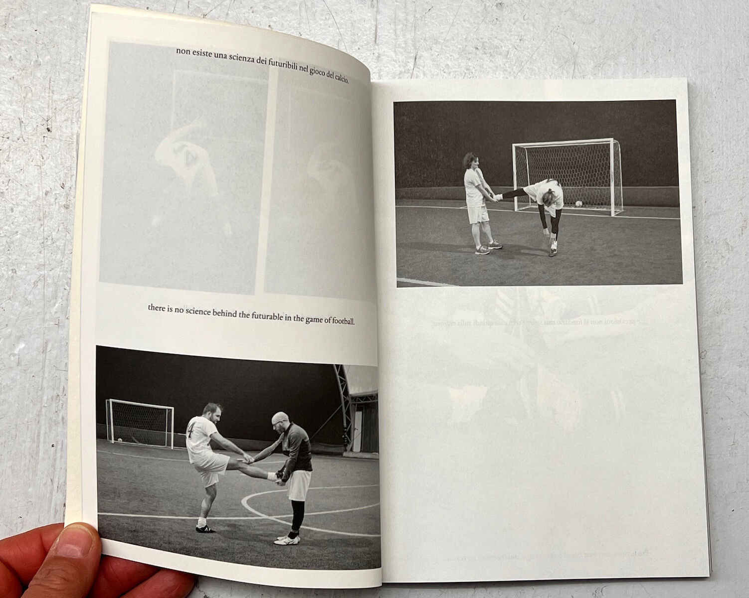 Over three years of mutual understanding and hard work, workshops were held in which, through artistic-expressive practices, there was a choral reflection on mental discomfort and on the path undertaken over the course of the residence. Football thus became a metaphor for such a path and an experience of treatment. Photographs, meetings, travel, training, stretching sessions, performance actions, interviews, writing exercises and collages are the actions that transform the art object into a place of dialogue, where it is the discovery of the other and the self that takes centre stage. The process of analysis/self-analysis turns into a creative impetus via the appropriation and re-signification of images. Through the cut lines around the bodies, it thus becomes easier to investigate that ‘not’, that ‘not’ that gave the project its name, that difficulty which is such a common trait of existence yet to which it is very difficult to give voice, form and meaning.