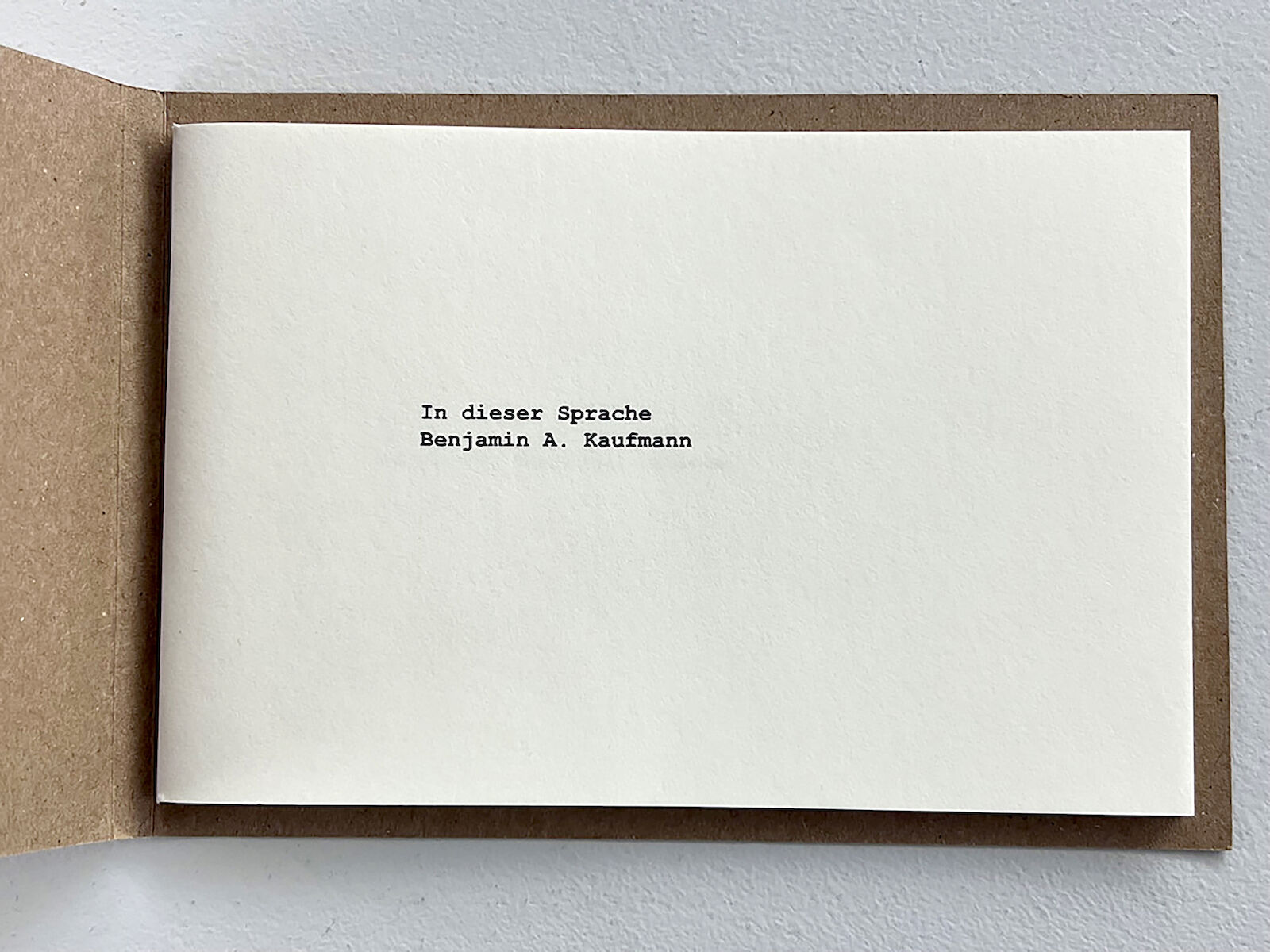 In dieser Sprache untersucht, wie sich Bedeutung in der deutschen Sprache durch die Shoah verschoben hat. Die Kürzestgedichte von einem bis zehn Wörtern, die alle wenigstens auf zweierlei, häufig aber noch mehr Arten gelesen werden können, sind mehr Objets trouvés der Sprache als Dichtung im herkömmlichen Sinn. Dieses Buch erschien im Rahmen der von dem Dichter Benjamin A. Kaufmann kuratierten Ausstellung "Der Sand aus den Uhren".