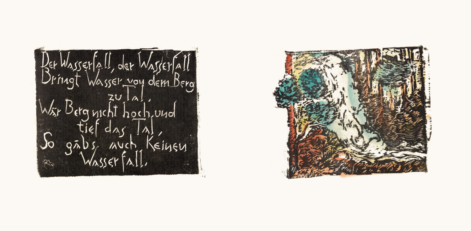 1932 veröffentlichte Karl Fränkel ein in einer Kleinstauflage auf seiner Handpresse gedrucktes Bilderbuch, das aus 12 teils handkolorierten Holzschnitten mit dazu passenden Versen besteht und von Hand als Blockbuch gebunden wurde. Der wiederentdeckte Künstler Karl Fränkel (Wien 1895-1964) beschäftige sich Zeit seines Lebens mit der, wie er sie in einem Buchtitel nannte „Wiener Vorstadtkunst der Gegenwart“. In einer Zeit der