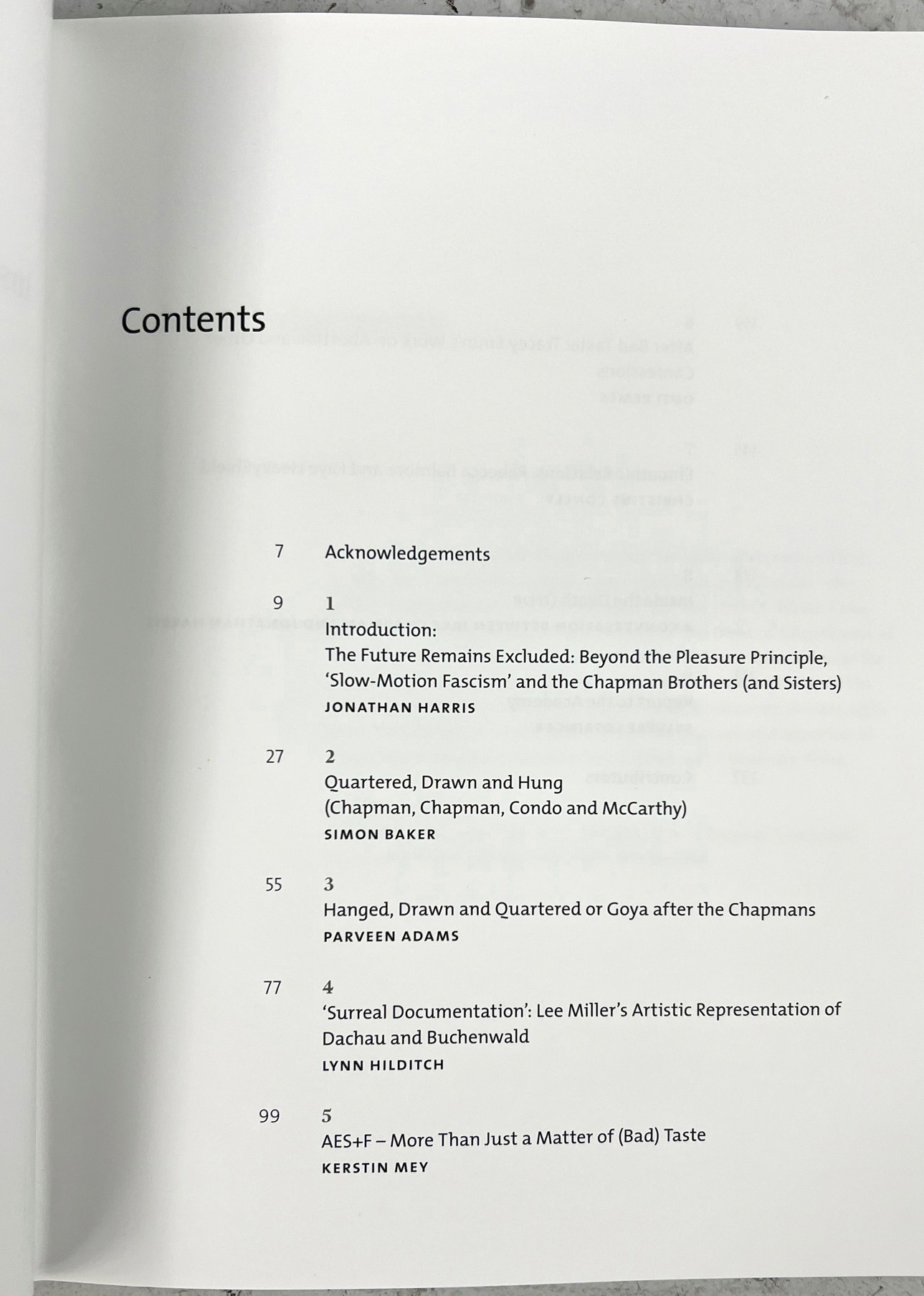 Over the last 17 years, they have produced some of the most disturbing and challenging artworks. These essays by leading figures in the field address the oeuvre of Jake and Dinos Chapman from a variety of critical standpoints, examining psychoanalytic, political, semiotic, popular-cultural, philosophical, and aesthetic depths and surfaces of Chapman graphic, sculptural and installation artefacts. In addition, four essays extend the discussion historically and theoretically by considering other artists who've attempted to deal with modern horror in graphic,