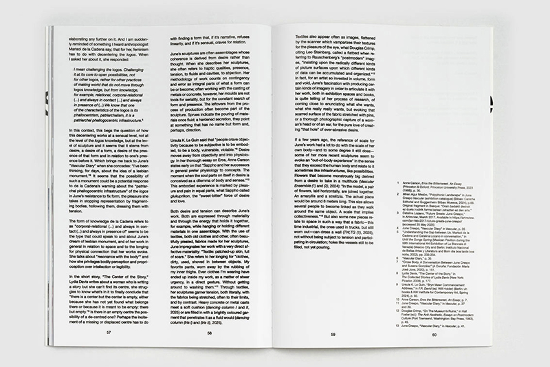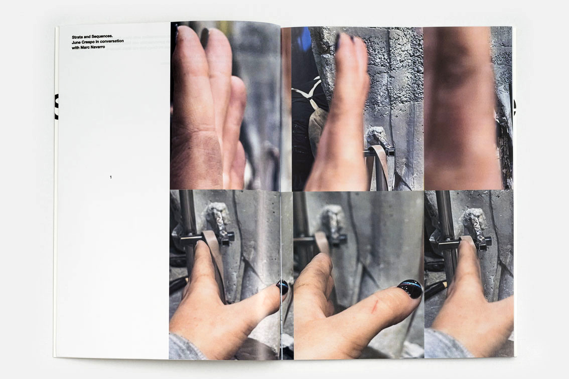 Accompanying the exhibition is a publication featuring an essay by the writer and curator Catalina Lozano, as well as a conversation between June Crespo and the author and curator Marc Navarro. The artistic intervention consists of a photographic print: an excerpt from the scanned material the artist used in assembling the pages of the book. This material traces the process of creation and the viewer’s relationship to it.