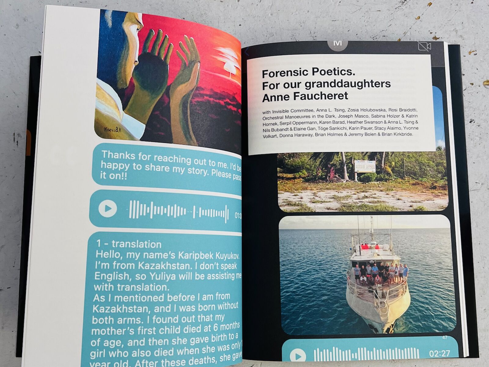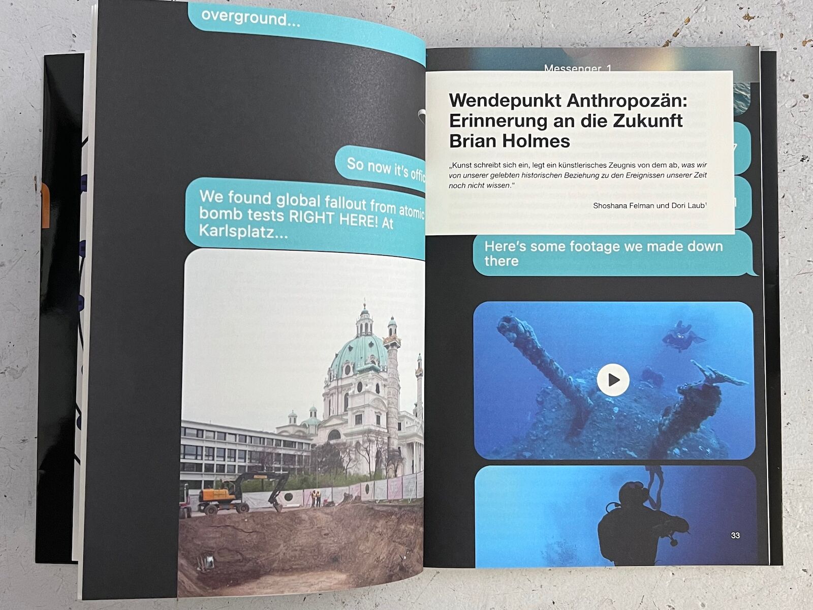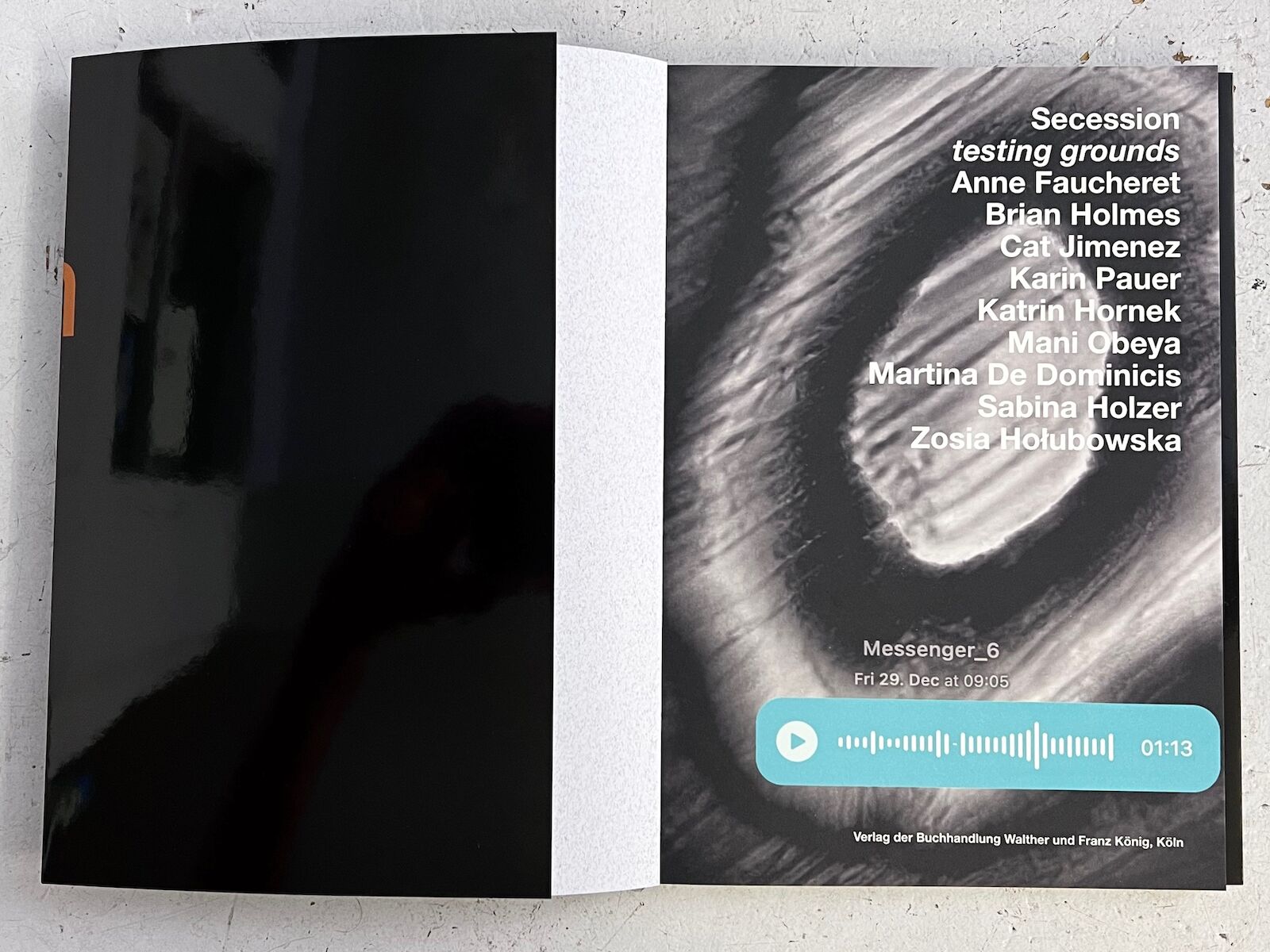 voice messages, which depict the diverse research and were written together with Sabina Holzer are dispersed throughout the book, together with photographs of the performance choreographed by Karin Pauer. The essays by the American cultural critic and activist Brian and the curator Anne Faucheret offer in-depth insights and exciting, wide-ranging references to this highly topical project. Excerpts of the soundscape composed by Zosia Hołubowska as an integral part of the installation can be accessed and listened to via a QR code.