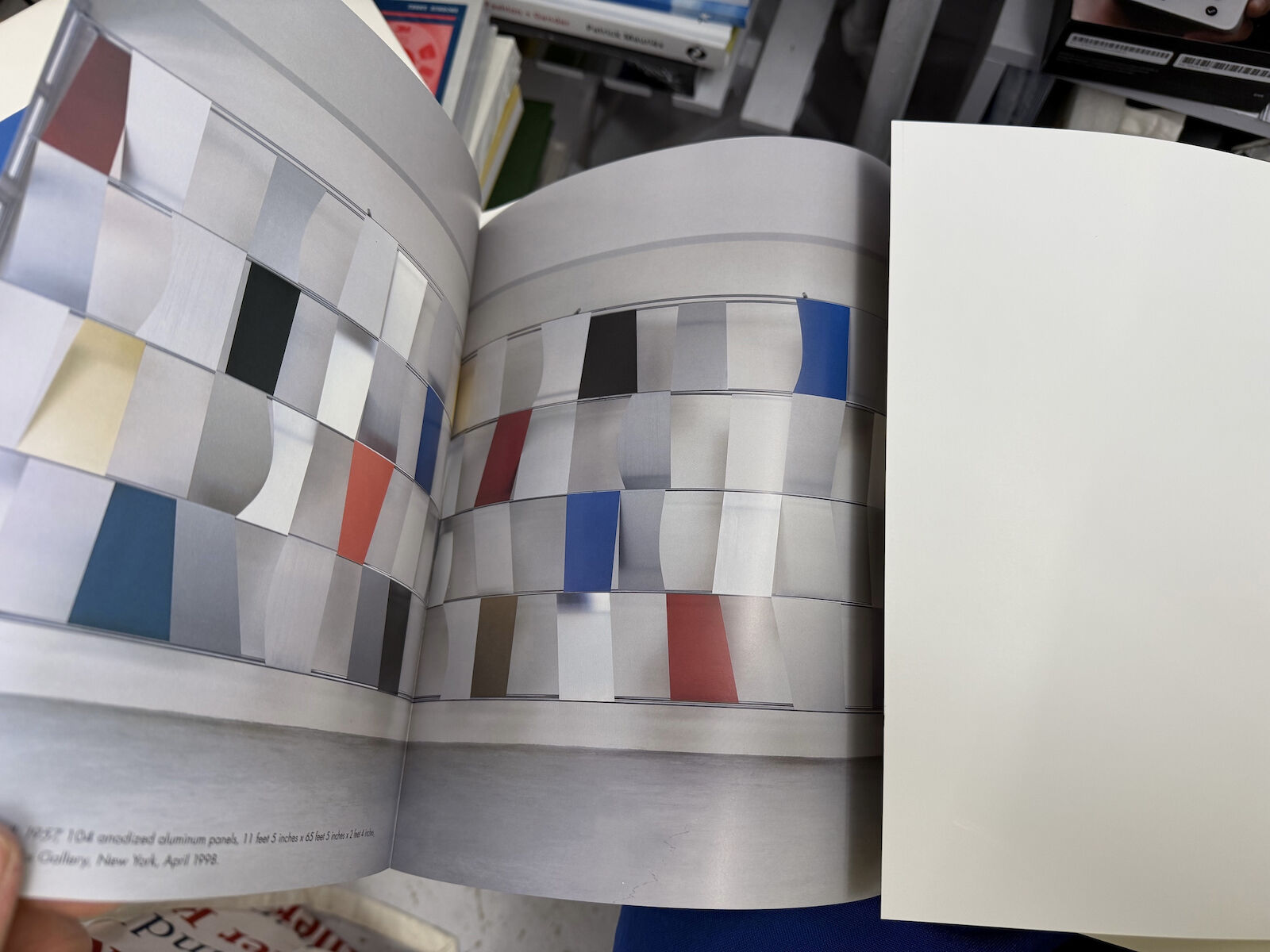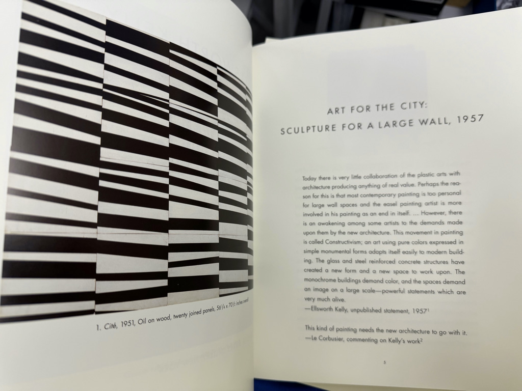 a series of new paintings and a major early architectural commission. In 1957, Kelly was commissioned to create a 65-foot-long wall sculpture for the Transportation Building at Penn Center in Philadelphia — at the time, his largest work and a significant early public work. The publication brings together visual documentation of this monumental sculpture alongside reproductions of recent shaped canvases and abstract paintings, highlighting Kelly’s ongoing exploration of form, color, and space. The sculpture project exemplifies Kelly’s interest in the relationship between artwork and architecture, treating the surface of the wall as an extension of sculptural form. The texts accompanying the images, including commentary by James Meyer, situate Kelly’s work within mid-century abstraction and consider how these early experiments in scale, geometry, and site-specificity anticipated later developments in his career. The result is a focused look at a pivotal moment when painting and sculpture intersected in Kelly’s practice, expanding the possibilities of both media.