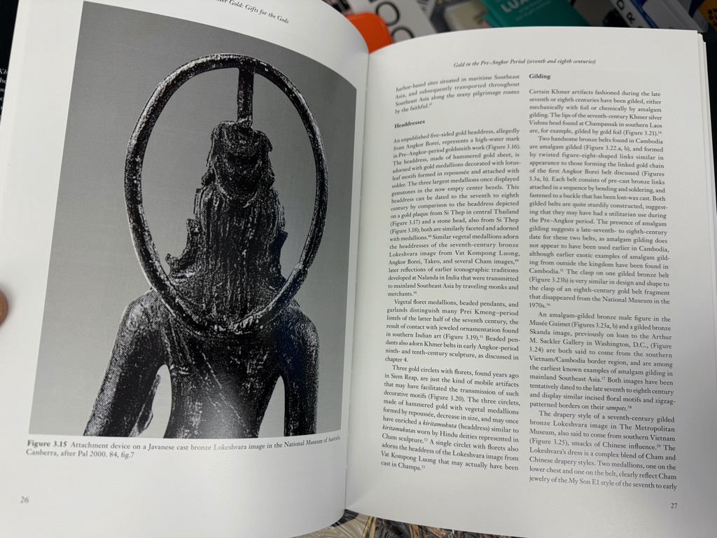 From an art-historical perspective, the study highlights the interplay between indigenous Khmer aesthetics and transregional influences from South Asia, China, and maritime trade networks. Particular attention is given to stylistic parallels with stone sculpture, architectural ornament, and bronze casting, demonstrating how goldwork participated in a coherent visual system linked to kingship, cosmology, and divine legitimisation.