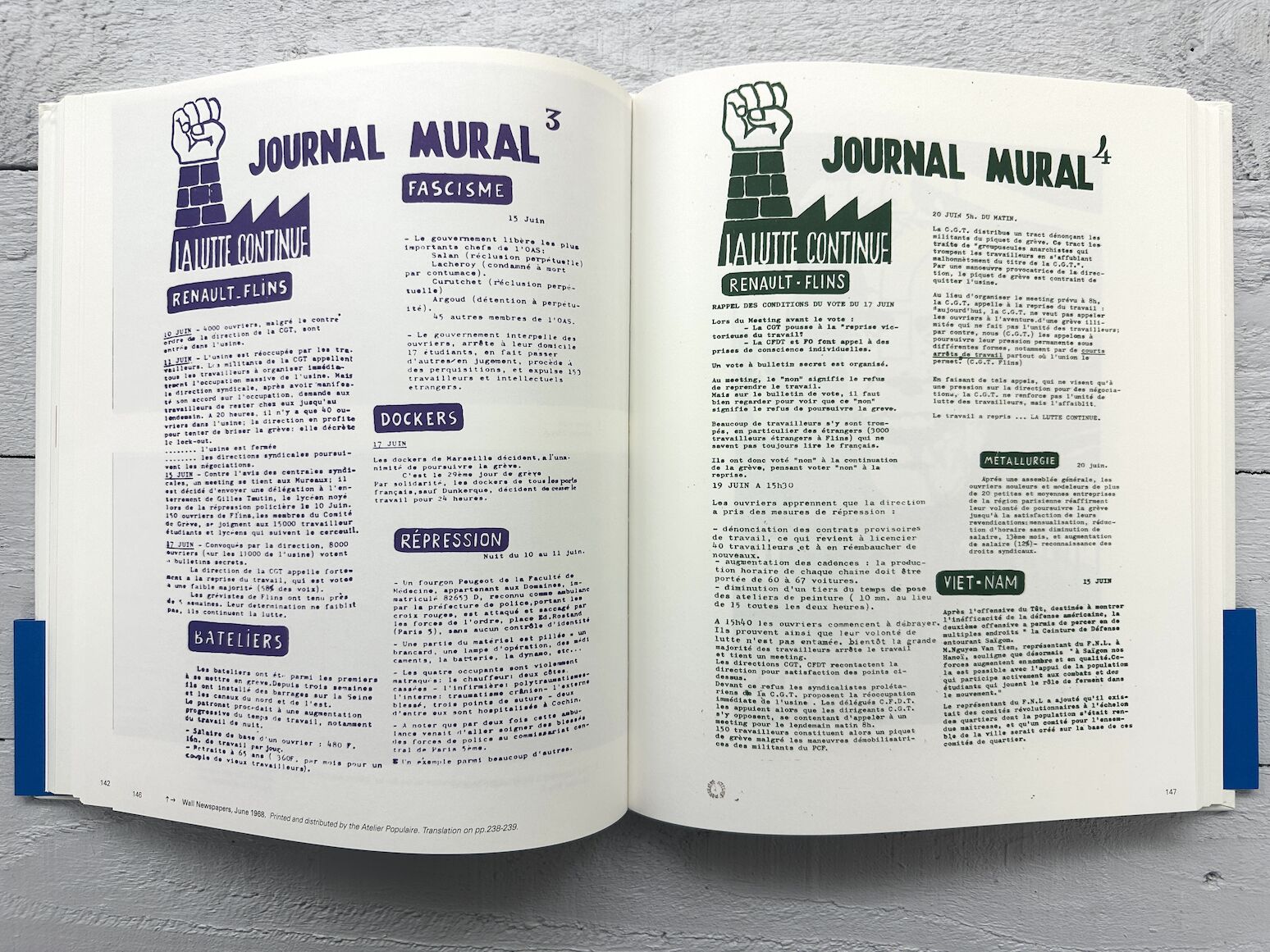 The confrontations between police and protesters led to a general strike of eleven million workers that brought the country to a virtual standstill and nearly toppled Charles de Gaulle's government. The faculty and student body of the Ecole des Beaux Arts were among the strikers, and a number of the students met spontaneously in the college's lithographic department to produce the first poster of the revolt, which bore the declaration “Usines, Universités, Union” (“Factories and universities unite,” loosely translated). From this initiative was born the Atelier Populaire (or “popular workshop” ), a collective of print shops that produced hundreds of posters to encourage the protestors and to report on police brutality. These posters included many of the often Situationist-inspired mottos for which May '68 is remembered today, such as “Be young and shut up” and “return to normal” (accompanied by a picture of a herd of sheep). Beauty Is in the Street reproduces more than 200 of these posters in full color, which have since become landmarks in political art and graphic design. Also included is a thumbnail index of an additional 411 posters; a wealth of archival documentary photographs and new translations of firsthand accounts of the clashes between the students and strikers and the police, many published in English for the first time; and an introduction by Philippe Vermès, one of the founders of the Atelier Populaire.