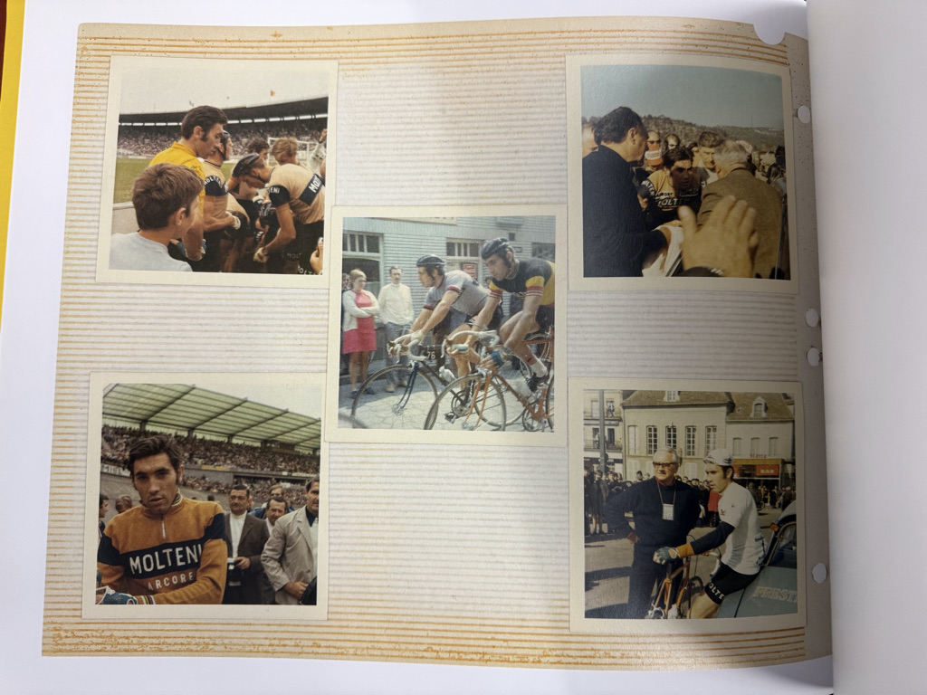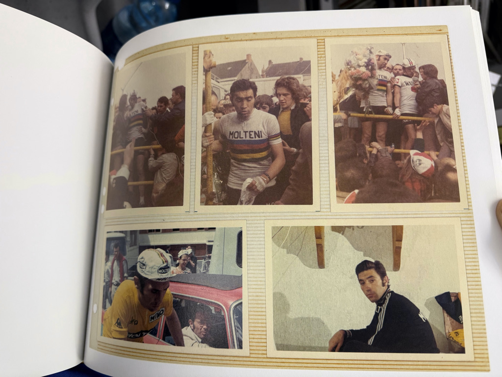 This photographic collection is unique too, because it is the story of Eddy Merckx as seen by a fan. L’album d’Eddy does not show considered portraits or typical finish line celebrations, but intimate and personal images of Merckx. This book depicts races including the Tour de France and the 1971 World Championships in Barcelona, and shows many of the riders of the time such as Raymond Poulidor, Roger Swerts and Herman van Springel. The origin of the album remains a mystery: all we know about its possible owner is the inscription on the inside cover: “Bien sportivement – M. Louis LeCouf” which is signed by Eddy Merckx. “That Belgian, he doesn’t even leave you the crumbs, he’s a cannibal!” Christian Raymond
