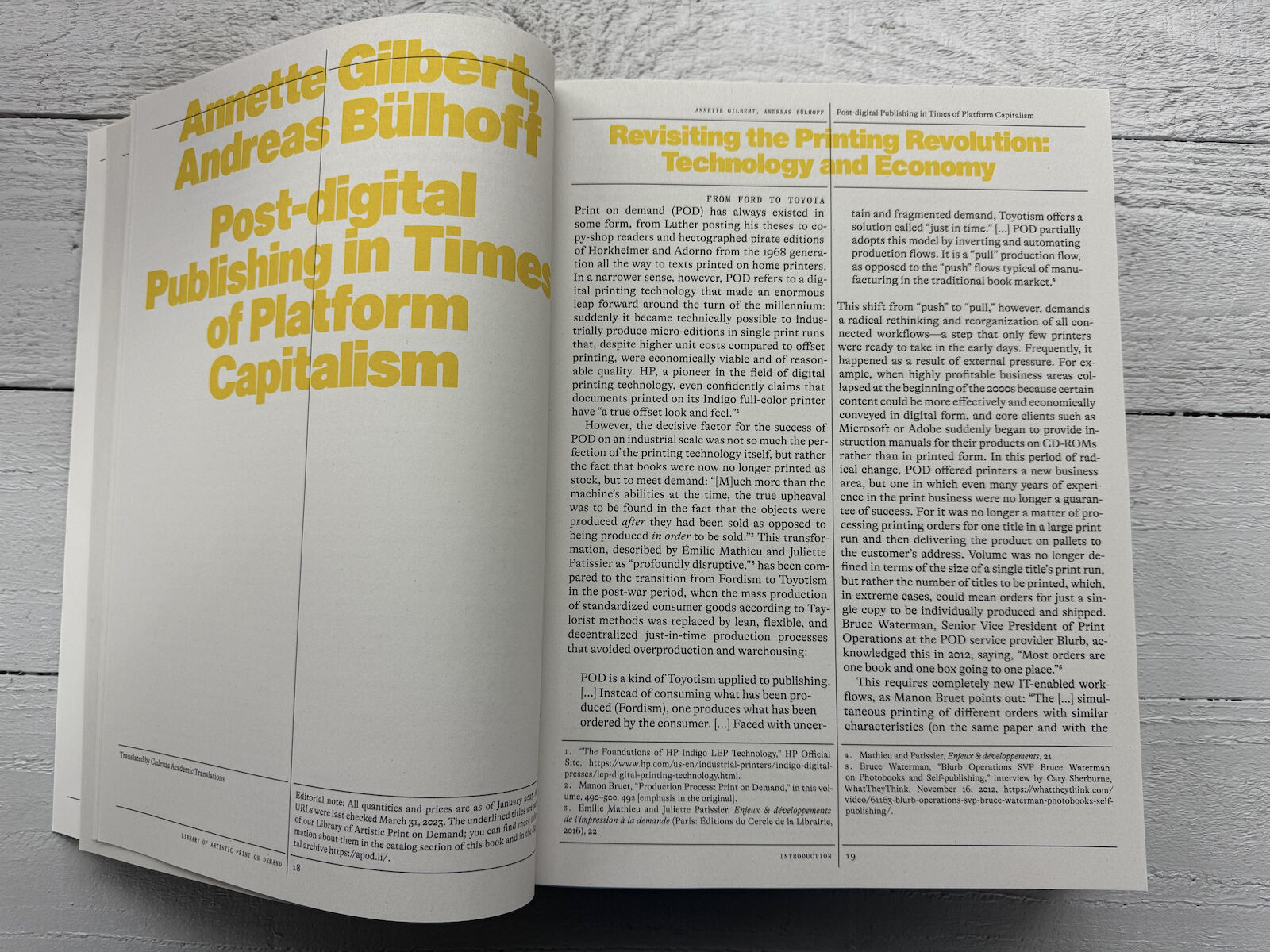 Print-on-demand has revolutionized the world of books. As analog-digital hybrids, PoD books are the very embodiment of the post-digital age.