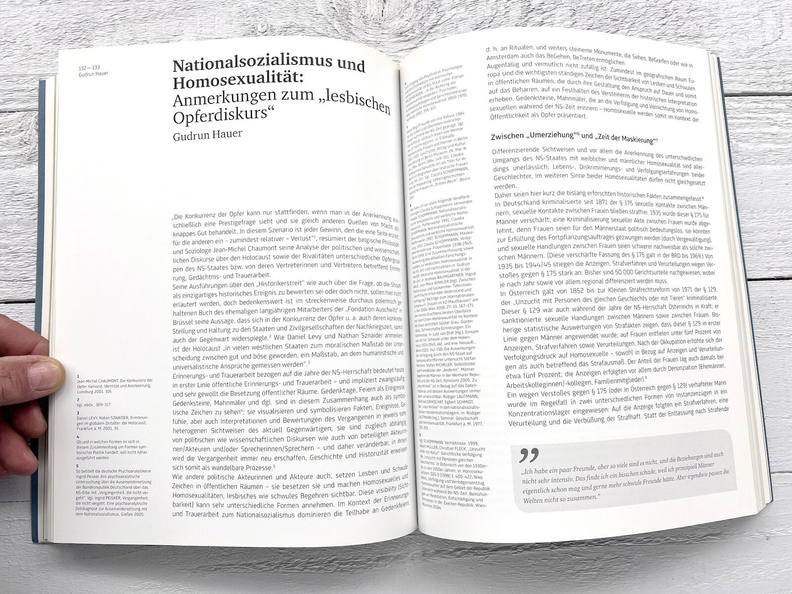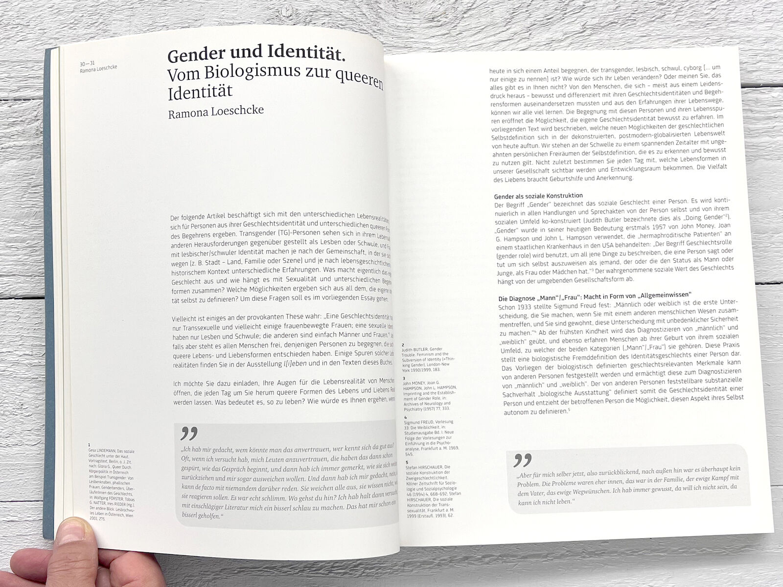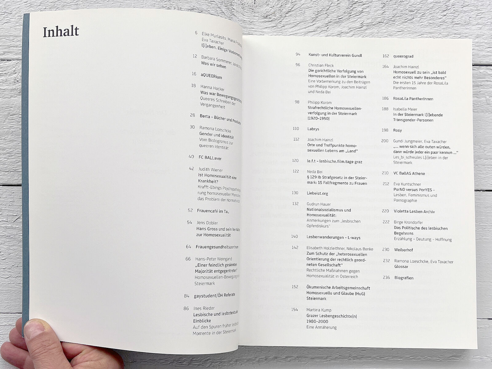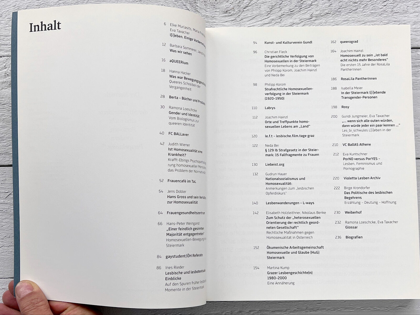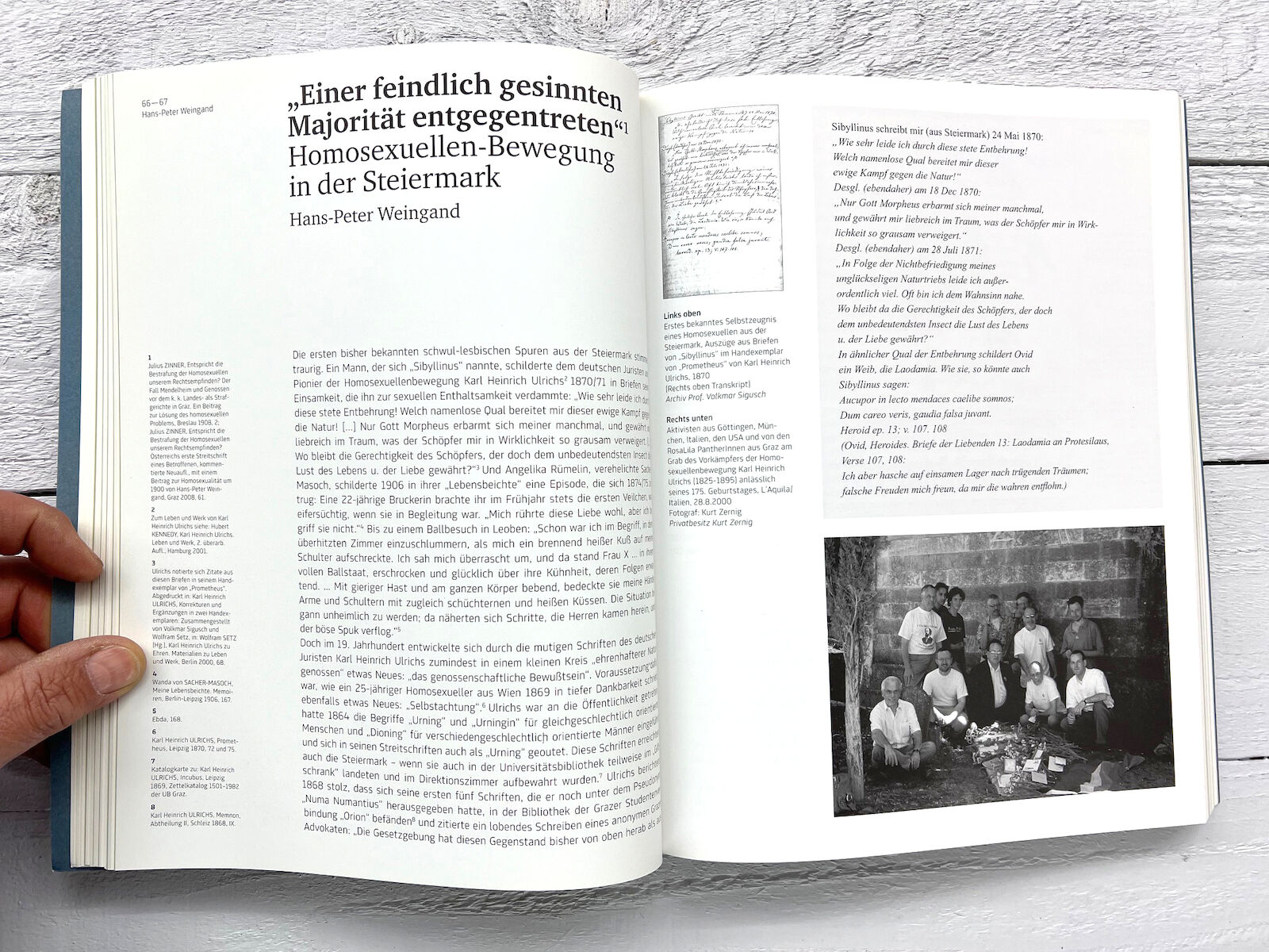 In einem partizipativen interdisziplinären Forschungsprojekt zu les_bi_schwulem Leben und Lieben in der Steiermark, angesiedelt am Büro der Erinnerungen/Universalmuseum Joanneum, wurden Fragen rund um Sex/Gender, Sexualität und Begehren, Normierung und Selbstorganisation behandelt. Auszüge aus biografisch-narrativen Interviews sowie Fotos und Informationen zur aktuellen les_bi_schwulen Bewegung geben gemeinsam mit fundierten Textbeiträgen Einblicke in ein breites Spektrum an Lebensentwürfen und Lebenswirklichkeiten. Mit Beiträgen von Neda Bei, Jens Dobler, Hanna Hacker, Joachim Hainzl, Gudrun Hauer, Elisabeth Holzleithner und Nikolaus Benke, Gundi Jungmeier und Eva Taxacher, Philipp Korom, Birge Krondorfer, Martina Kump, Eva Kuntschner, Ramona Loeschcke, Isabella Meier, Ines Rieder, Hans-Peter Weingand und Judith Wiener.