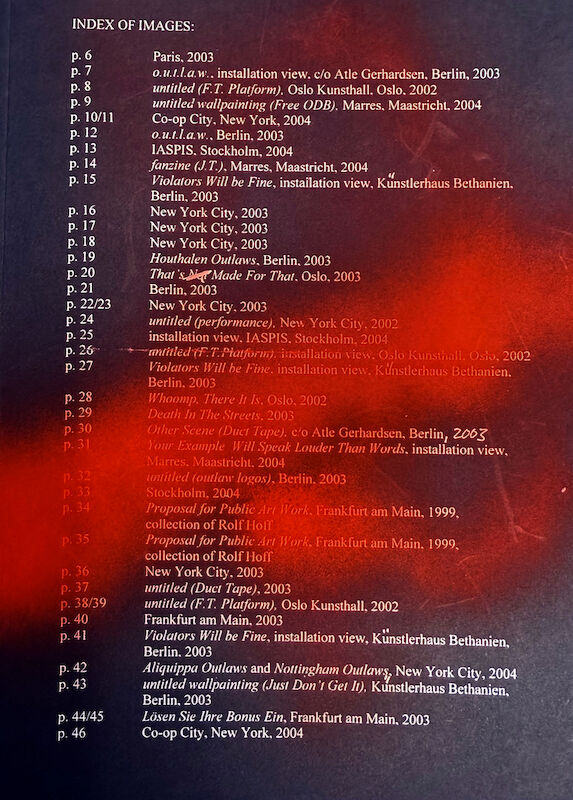 Produced in collaboration with editor Christoph Keller and published by Revolver – Archiv für aktuelle Kunst in Frankfurt in 2004, the book situates Einarsson’s practice within a broader field of independent art publishing of the early 2000s. It reflects the artist’s engagement with appropriation, visual codes, and the circulation of images across art, music, and political culture.