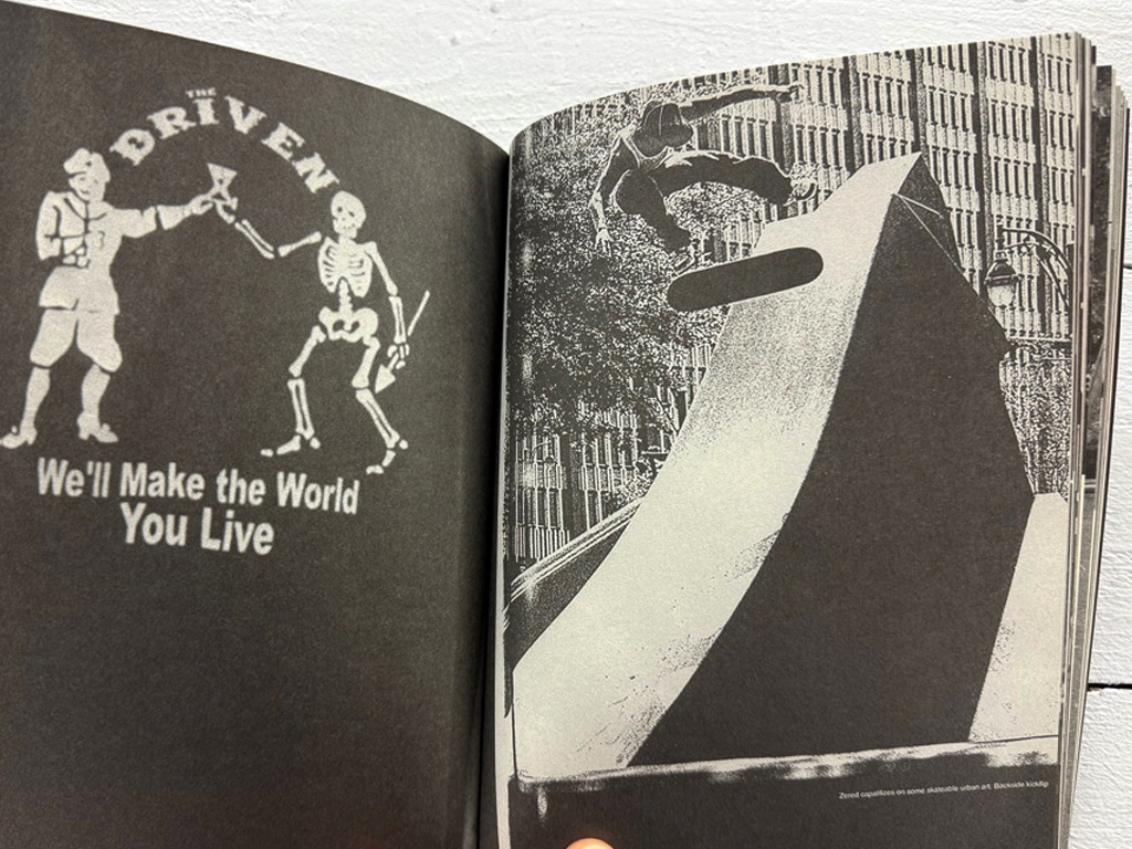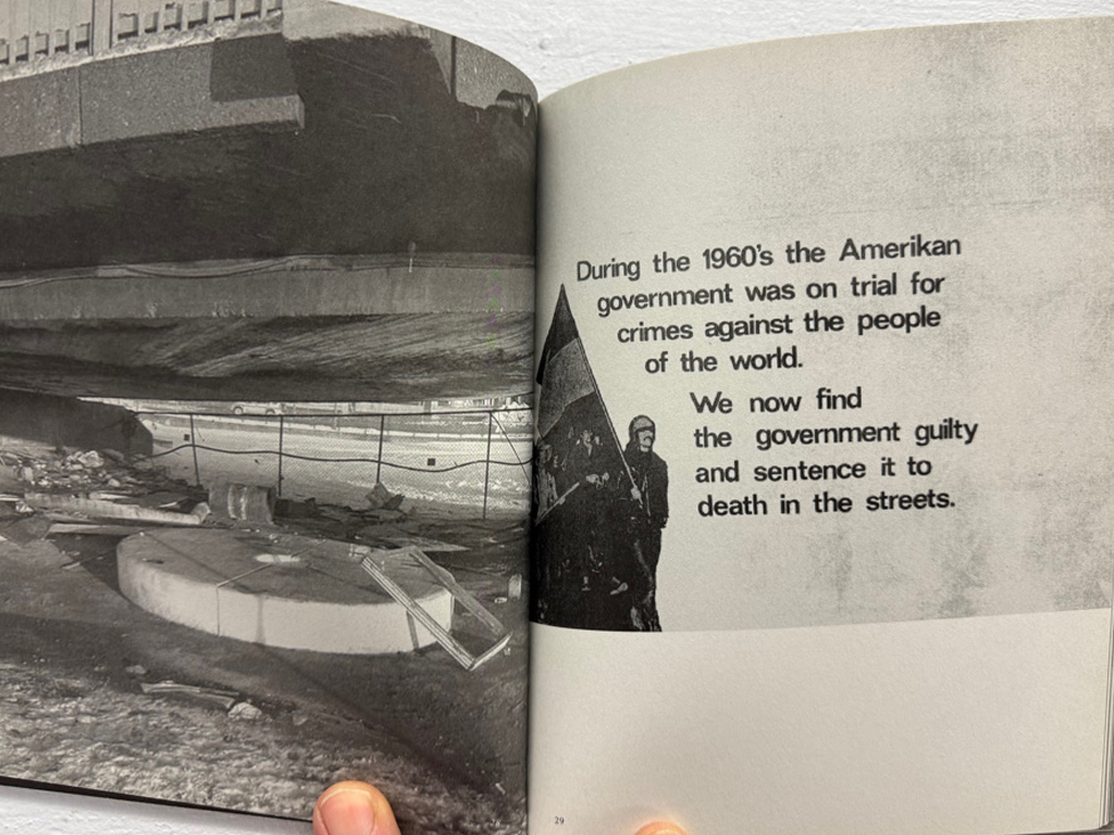The publication brings together visual references and materials that reflect his ongoing interest in subcultural imagery, political symbolism, and the graphic languages of counterculture.