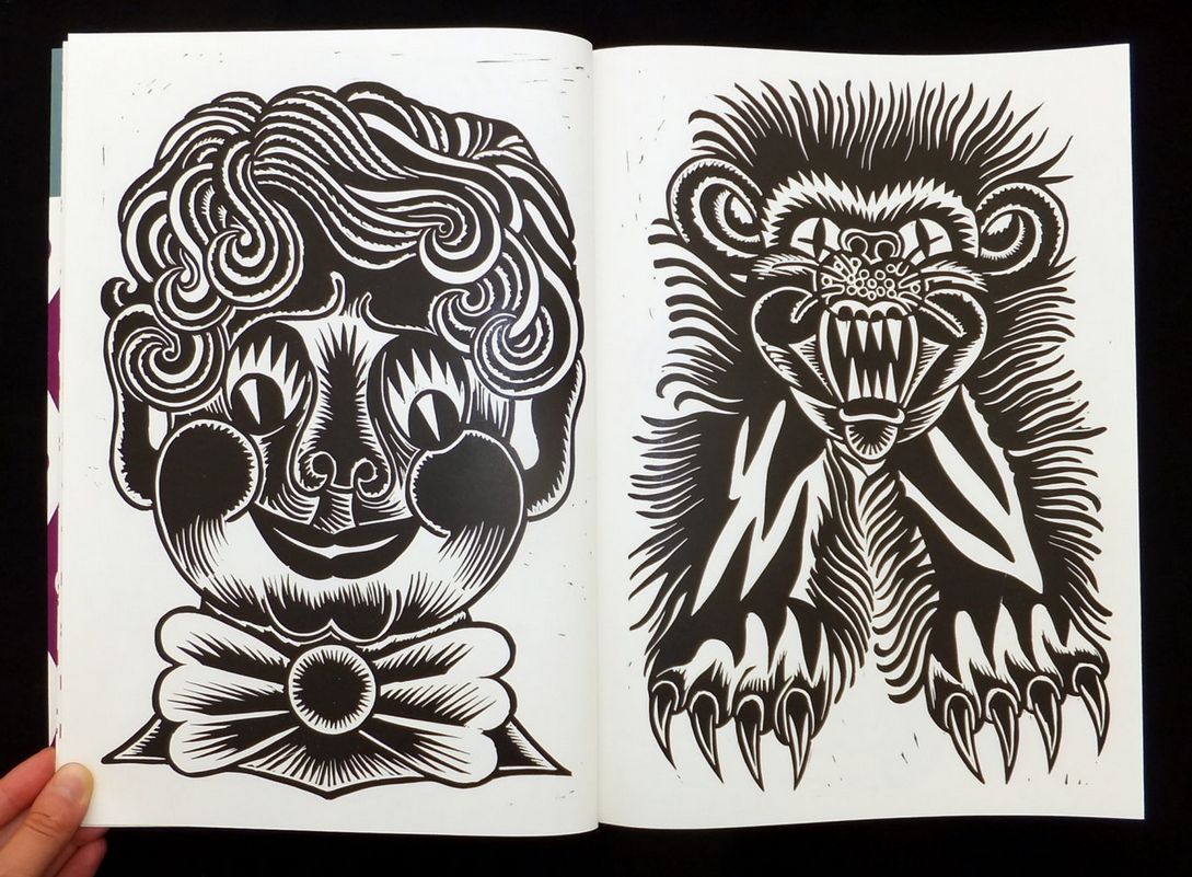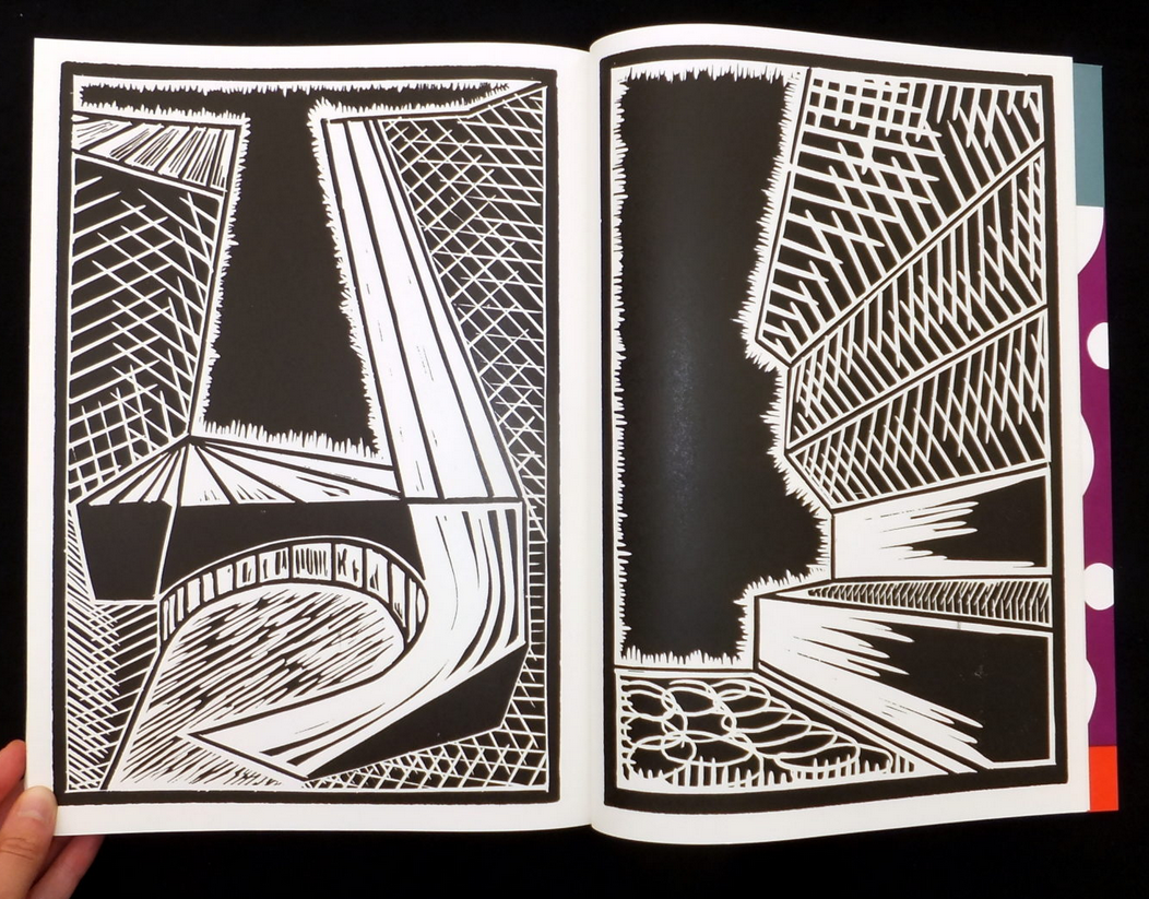 The volume brings together original prints produced specifically for the book, using techniques such as woodcut and linocut. Each contribution is conceived as an autonomous work rather than a reproduction, reinforcing the book’s status as an exhibition in printed form.