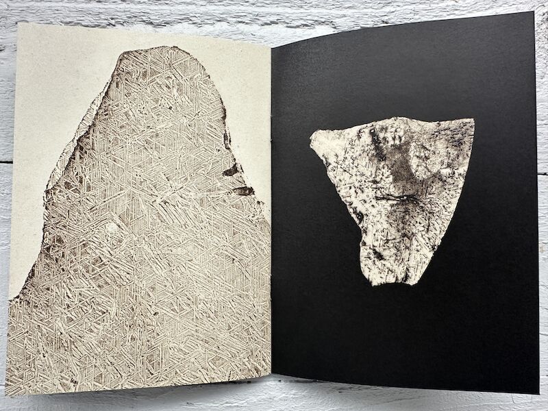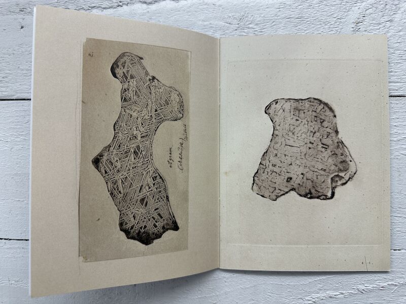 ““High up in the air”, that’s how one could translate the ancient Greek word μετέωρος (metéōros), which the term “meteorite” derives from. When entering the Earth’s atmosphere, meteorites appear as fireballs in the sky. Anna Artaker quite literally brings such celestial light phenomena closer to us: the artist has selected nature prints of meteorites from the collection of the neighbouring Natural History Museum Vienna, adapting them artistically. Nature printing is a technique for which the object to be depicted itself serves as a printing block. Polished and etched meteorite discs are directly inked and printed or — according to a technique perfected in mid-19th century Vienna at the k. k. Hof- und Staatsdruckerei (Imperial and Royal Court and State Printing Office) — are molded twice in order to receive an intaglio printing plate.“