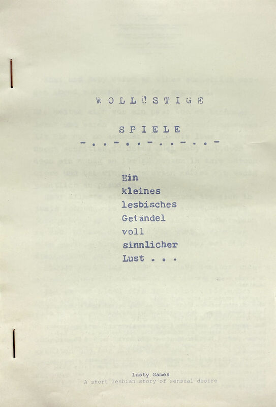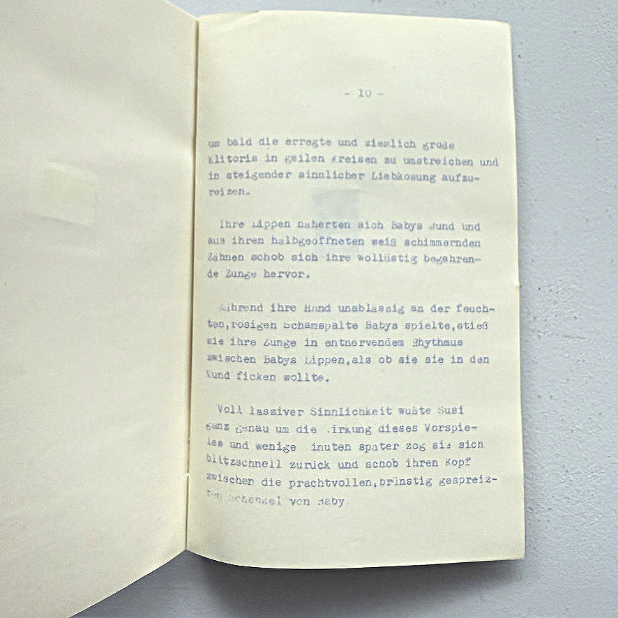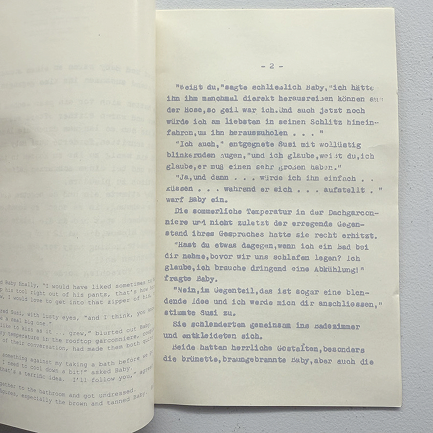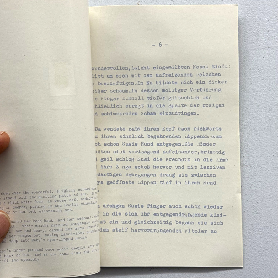 artist’s publication released in Vienna in 2003. The anonymous text unfolds a deliberately explicit erotic narrative from a lesbian perspective.