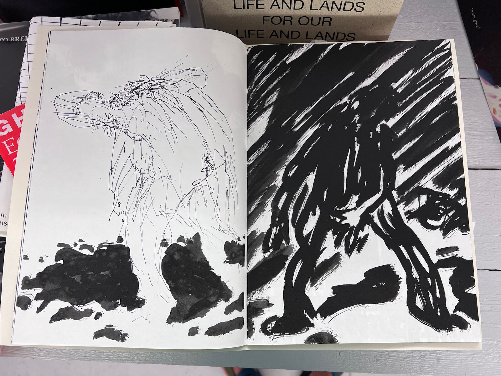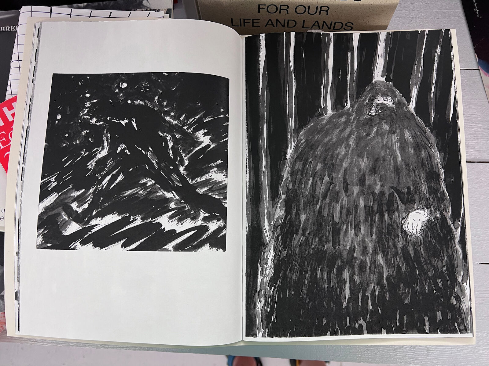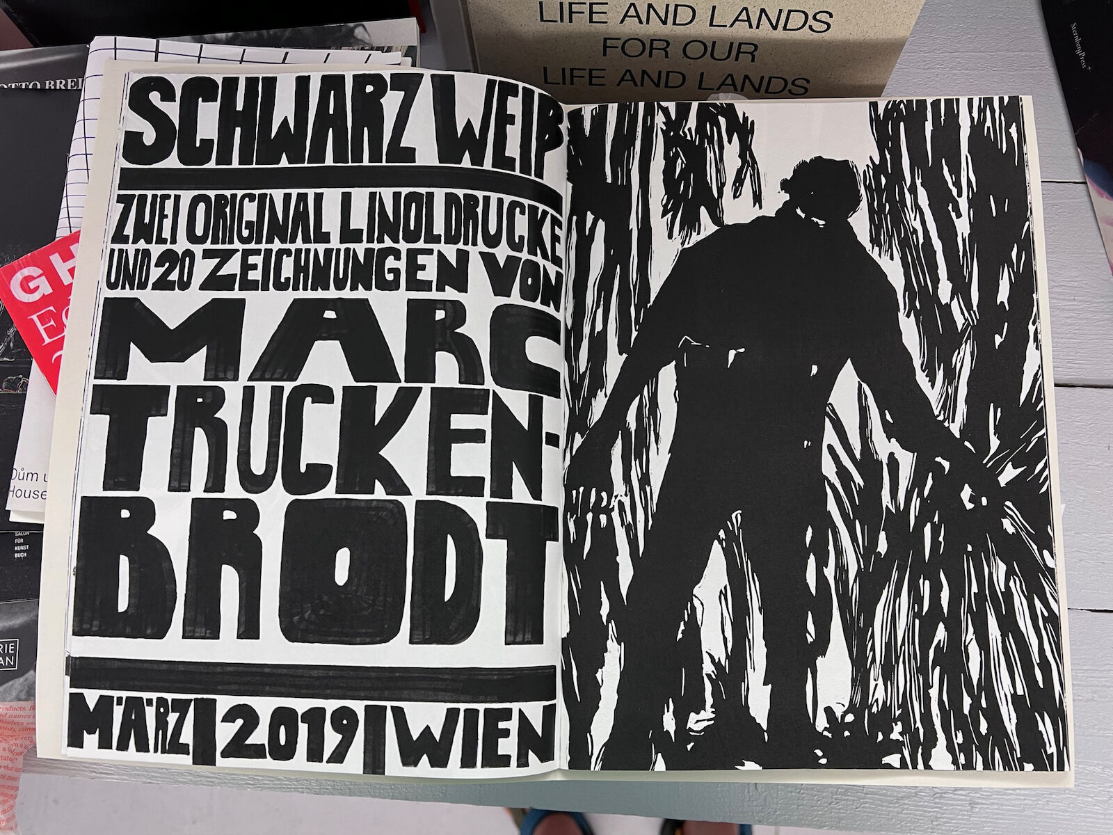 In einem Buch: Zwei original Linoldrucke und 20 Zeichnungen von Marc Truckenbrodt.Artiast Book 5/41Vienna 2018