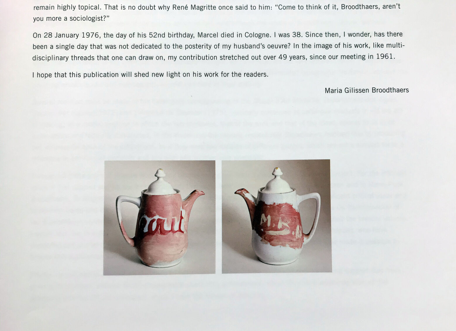 This fully illustrated collection of Broodthaers’ writings presents his early poetry in a comprehensive selection of statements and critical essays—some unpublished while others were originally published in newspapers and art magazines and are here collected for the very first time. All of this, together with his so-called open letters, interviews, preparatory notes, and scripts, introduces us to his solid thinking on politics, economics, nationalism, publicity, institutional politics, and culture.