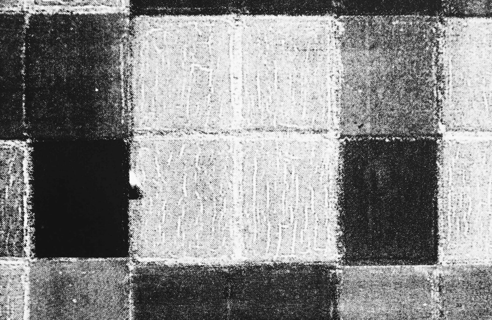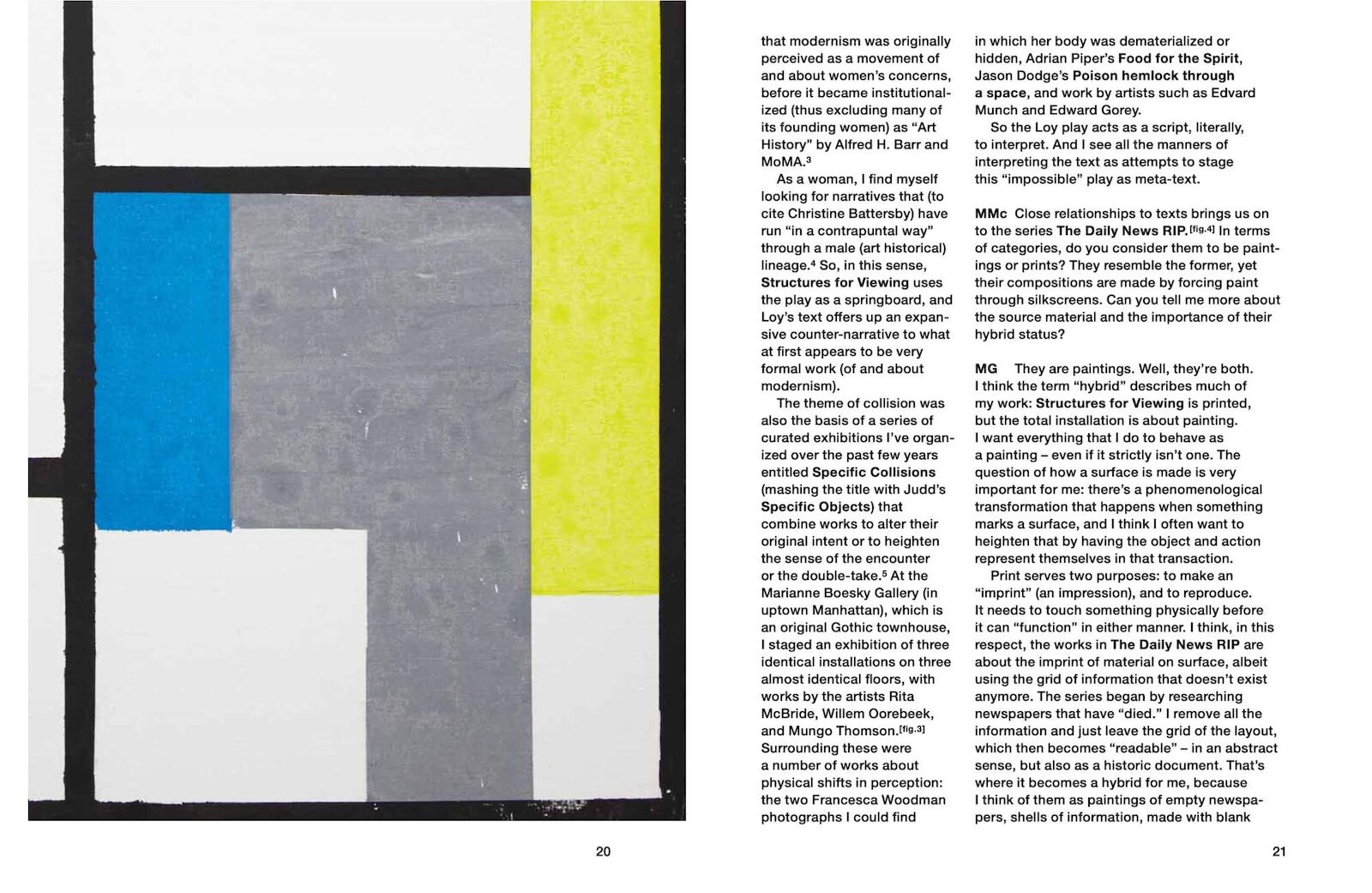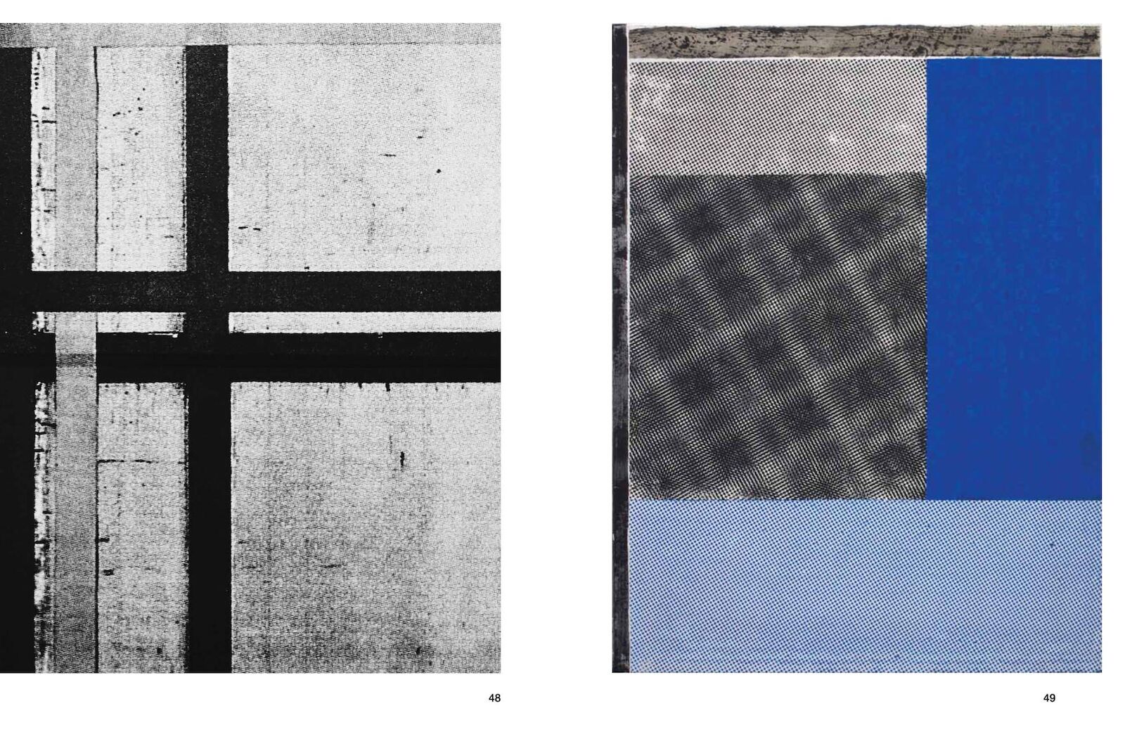 Gordon’s work as a painter and printmaker follows the relationship between representation and abstraction; she often enlarges details to reveal hidden structures, zooming in until textual or pictorial information is reduced to dots and lines. The publication navigates through four concurrently exhibited and ongoing series (Structures for Viewing, Blow Up Modernists, The Daily News RIP, and Material Evidence) installed at Spike Island.