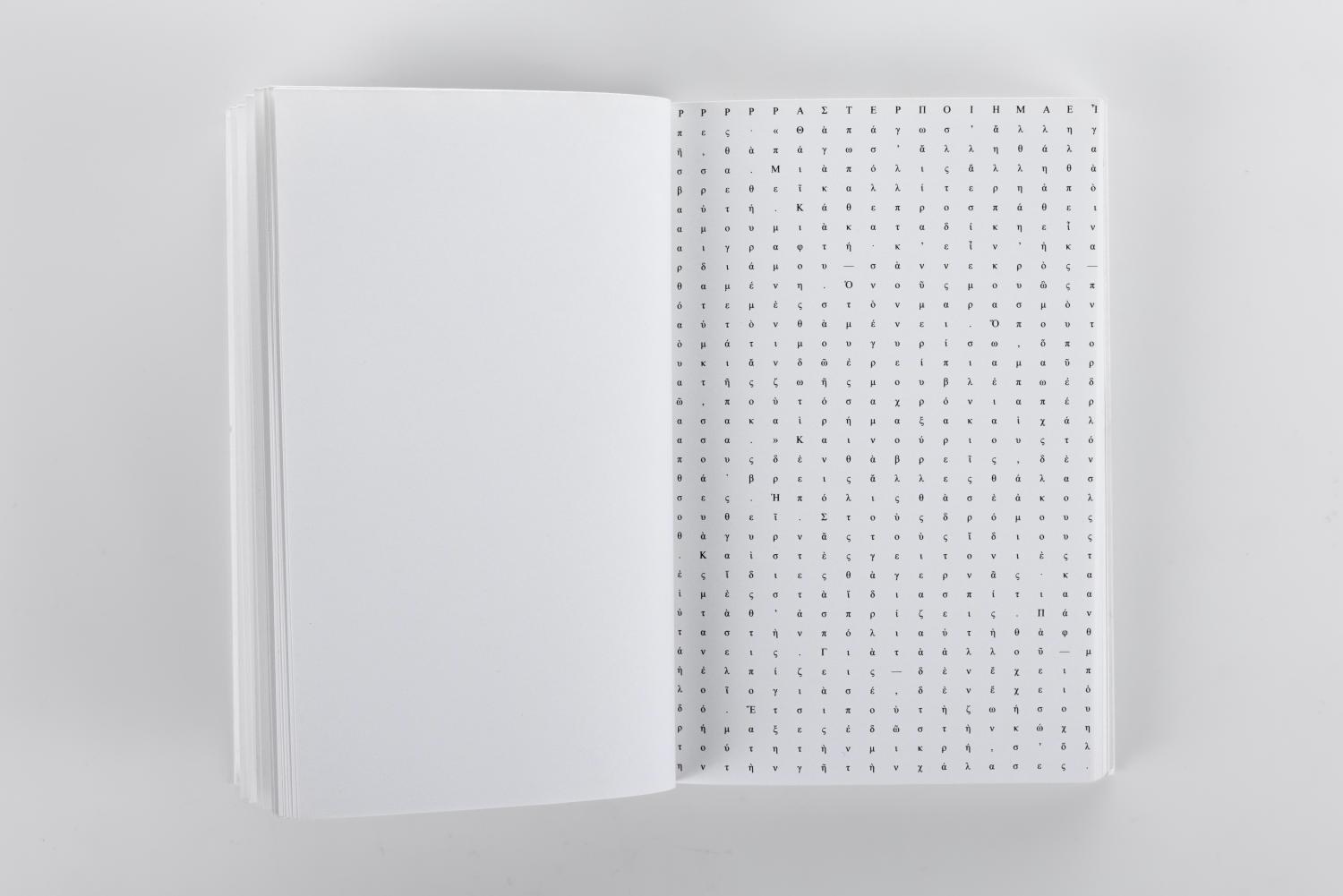 ΠΟΙΗΜΑ(ΤΑ) start out with the default formatting functions of Word, through a sequence of pages explore the limits of the page as two-dimensional space. It plays out a fair amount of art-historical inside jokes, and explores site-specificity within publications, as well as how information is reproduced or moved from one place to another.