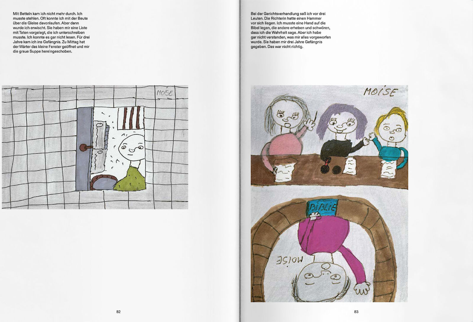 auf seinem Weg. Sein Weg führt ihn von einem stabilen, behüteten Leben zurück auf die Straße, zum Bahnhof und zu den Drogen. Moise, wie er sich selbst nennt, weigert sich, sich gefangen nehmen zu lassen, er weicht seinem Schicksal immer wieder aus und macht clevere Wendungen auf seinem Weg. Er ist immer in Bewegung, auch wenn der Weg an den Rand des Abgrunds führt, und macht weiter, wo andere längst aufgegeben hätten. In Hunderten von farbenfrohen Illustrationen hält Moise Momente und Erinnerungen fest, die ihm wichtig erscheinen, mit einem scharfen Gespür für die Komik oder Tragik einer Situation und destilliert jede Szene auf ihre Essenz. Seine Zeichnungen, die von entwaffnender Unmittelbarkeit, roher Intensität und Humor geprägt sind, laden zum Lachen, Weinen und Nachdenken ein. Sie vermitteln sowohl die brutale Realität des täglichen Lebens als auch Momente des Feierns. Es wird gekocht und gegessen, getanzt und gesungen und viel gelacht; Kinder werden geboren, Menschen stellen sich großen Gefahren, werden krank und sterben eines gewaltsamen Todes. Plötzlich taucht ein Fremder auf - ein Priester aus Österreich, der den Straßenkindern Brot bringt, wie die Raben, die Gott dem Propheten Elia im Alten Testament schickt. Seit mehr als drei Jahrzehnten ist das Leben von Moise nun mit den sozialen Projekten von Pater Sporschill verwoben. Seine Zeichnungen und Kommentare spiegeln auch die Geschichte dieses bemerkenswerten Engagements wider. Ruth Zenkert, die Moise seit mehr als dreißig Jahren begleitet, und Nora Schoeller haben Moises Illustrationen zu einem Buch zusammengestellt, das eine völlig neue Perspektive auf ein abenteuerliches Leben bietet, das für viele unvorstellbar ist.